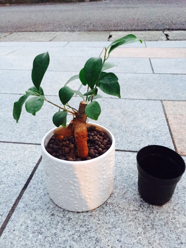 先日のお休みに今年の夏までにはやり遂げようと思っていた事を終わらせました! それは、ガジュマルの植え替えです。昨年の夏頃に近くのお花屋さんで購入した可愛らしいガジュマルちゃんです。根っこが太くて変わった形をしているのがガジュマルの特徴です。ちなみに、「幸せを呼ぶ樹」とか「精霊の棲む樹」なんて呼び方もされています、何だか素敵ですね(*^o^*)