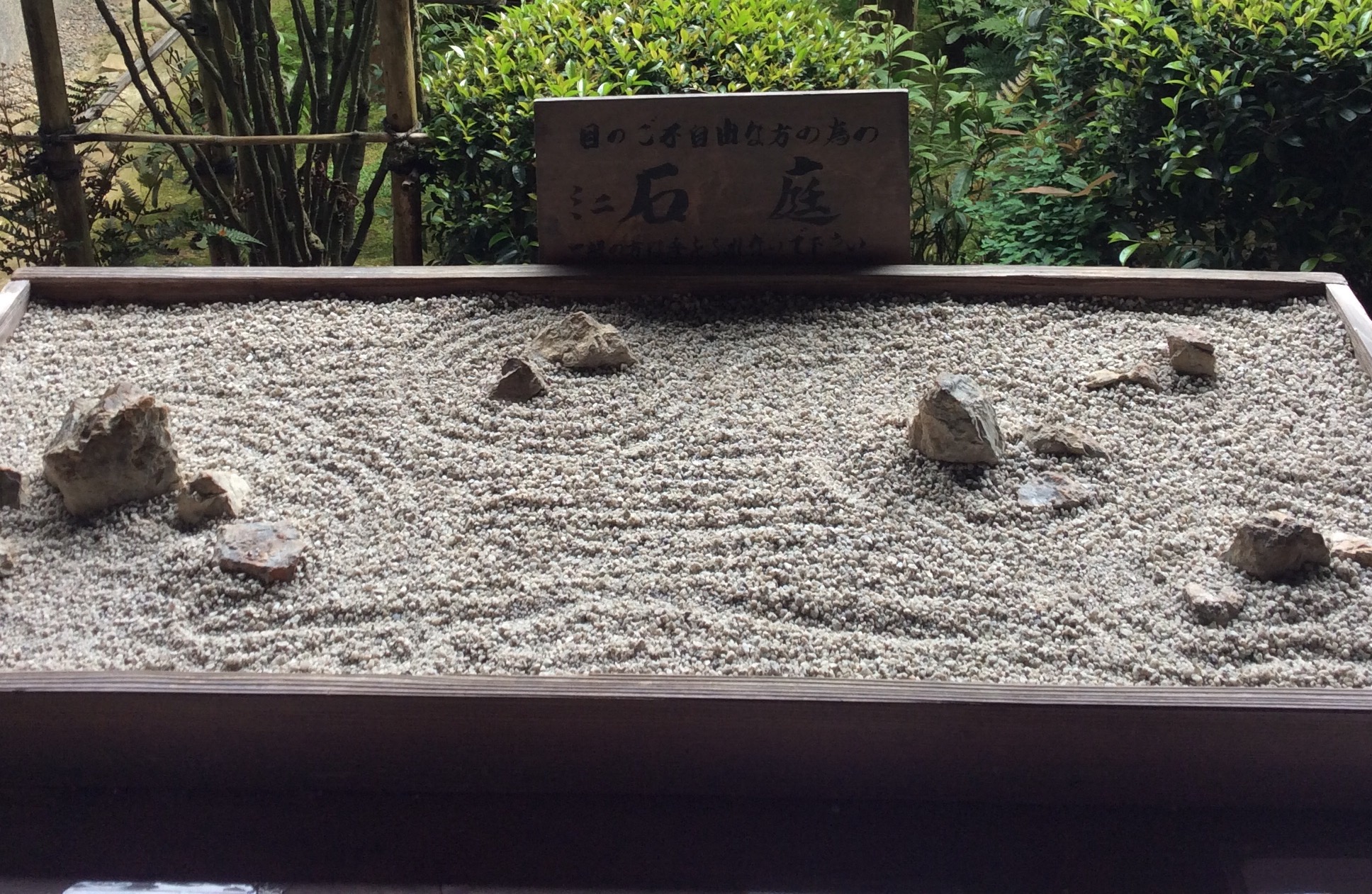 帰り際に気がついたのですが、入り口近くにはミニの石庭が展示されてました!