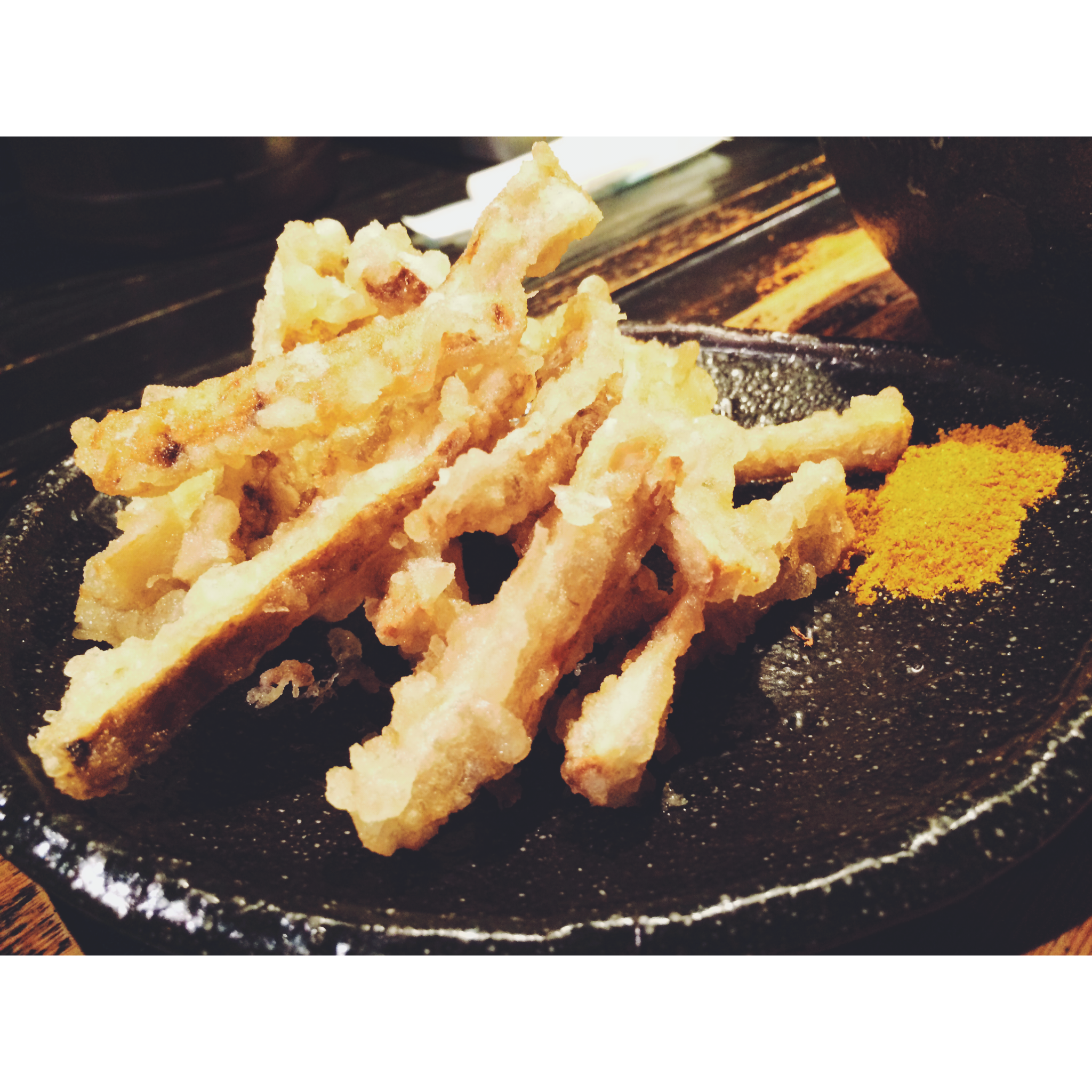 土ゴボウの天ぷらは別皿で出てきましたが、ボリューム満点でした!天ぷらはサクサクでとっても美味しいです!添えられているカレー味の塩をつけるとまた違った味わいを楽しむことができました。