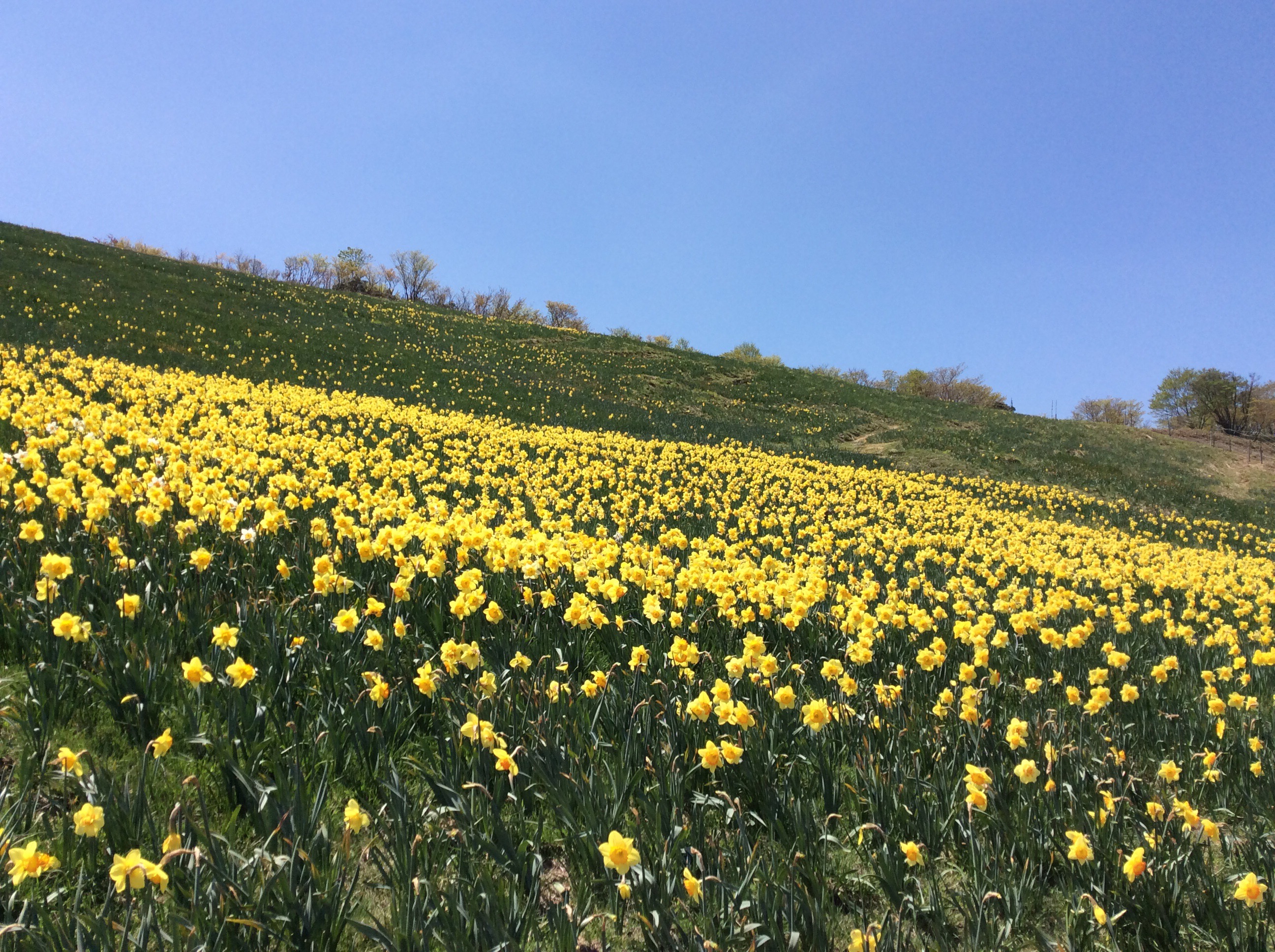 丘の手前まではなだらかな下り道だったのでめちゃくちゃ楽チンに歩いて行けたのですが、上の写真のスイセンのお花が咲いてある辺りからめちゃくちゃ急な登り坂でした。。。(°_°)。。。