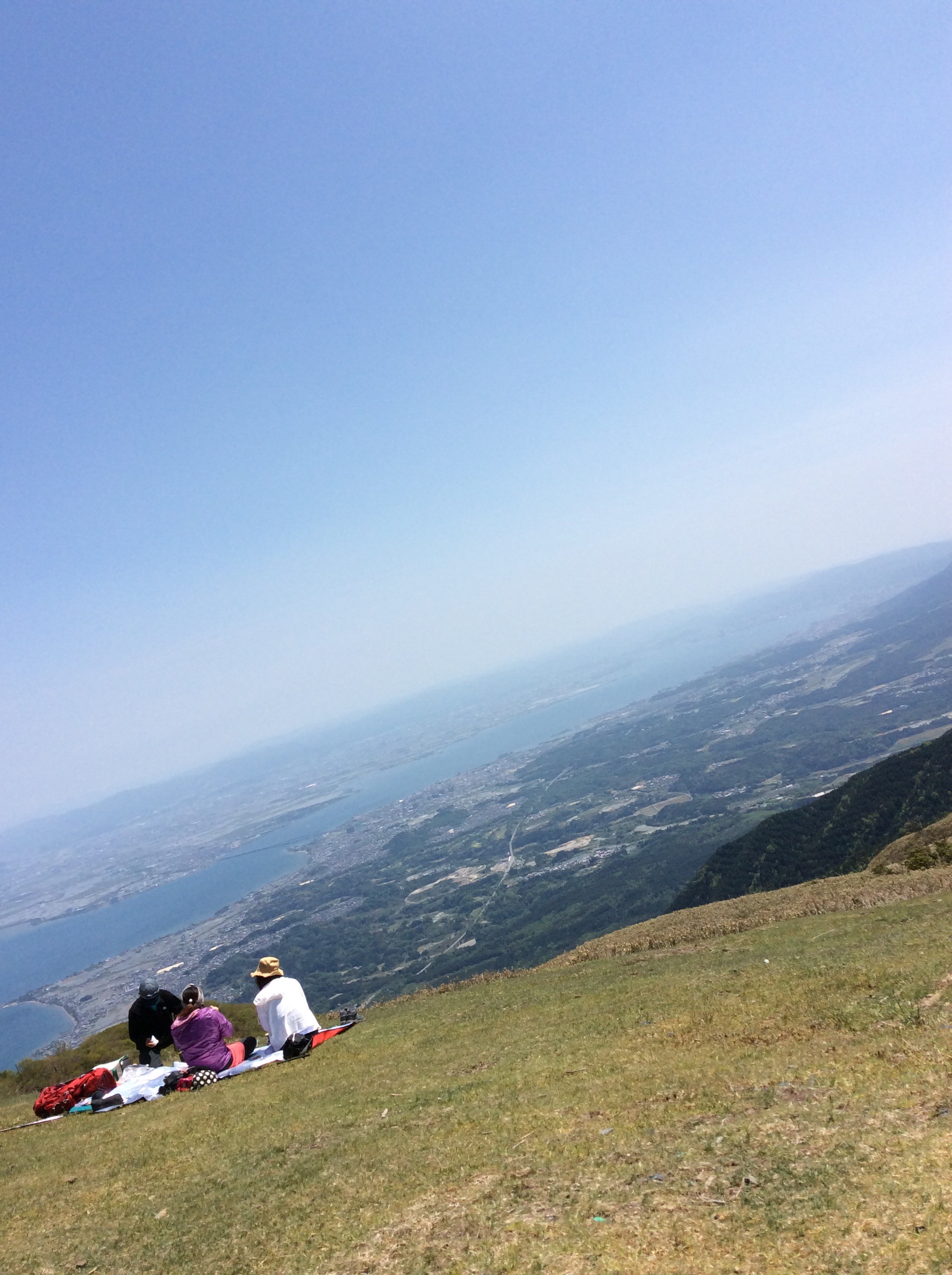 とっても寒い山頂では、芝生になっていたので、愛犬を連れてきている方、遊具持参の方、ピクニックをされている方、山の好きな方などたくさんいらっしゃいました!