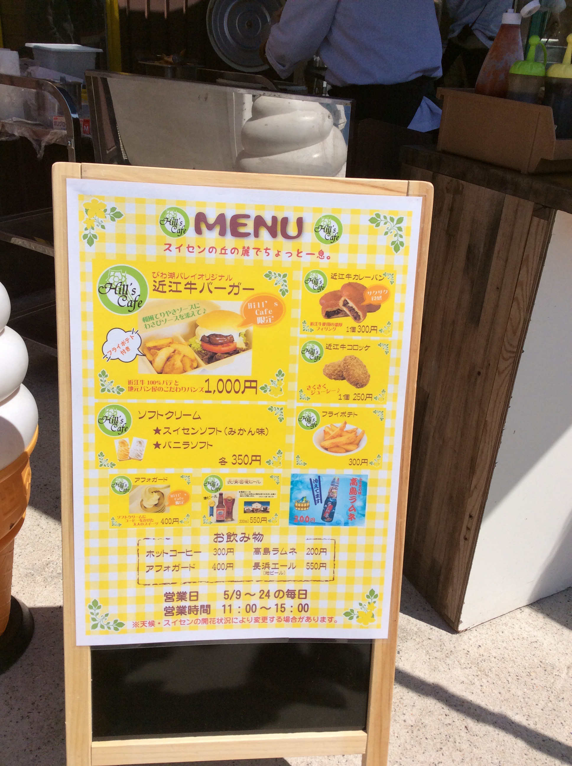 その後はお腹も空いており、目にとまったこちらの看板に近江牛肉バーガーがあり購入しました!