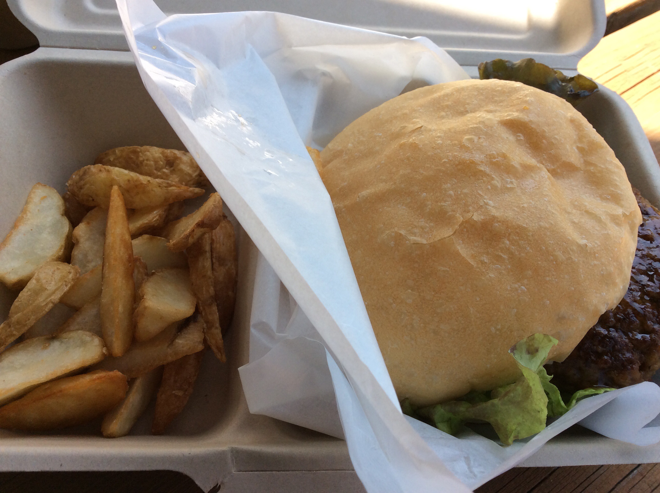 ハンバーガーとポテト、ドリンクでランチにしました!