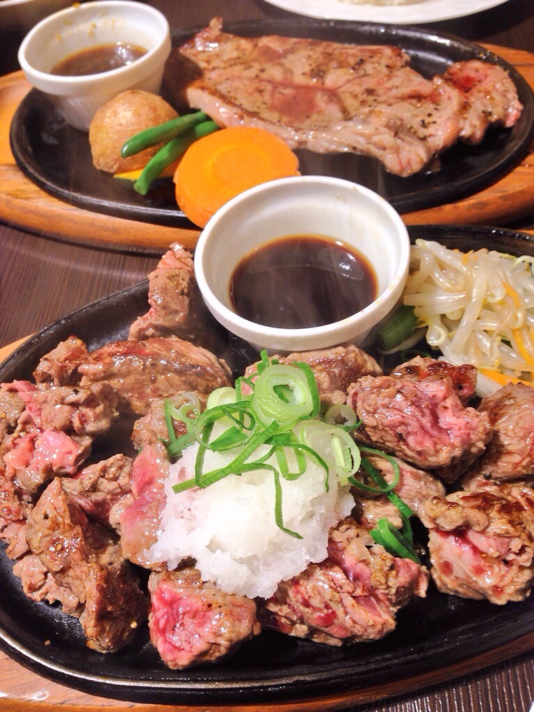 そんなこんなで日も落ちていき、一日の最後にはペッコペコに空いてしまったお腹をおさえ 肉…肉食いたい…肉…… 友人とそう呟きあいながらなんとか辿り着いたステーキ屋さんで全力でお肉を貪りました。