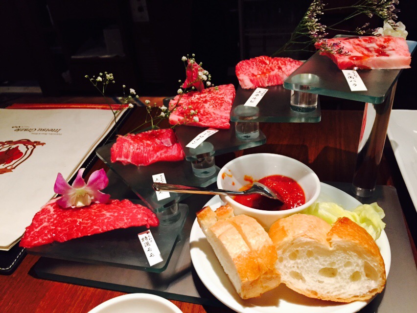 一番上の写真は階段みたいなお皿にお肉が置いてあり、下から順に脂身の少ないお肉がのっています。そしてなんと私の大好きな、生せんまいが!!!生せんまいは1人でペロリと食べてしまいました( ´ ▽ ` )ノ
