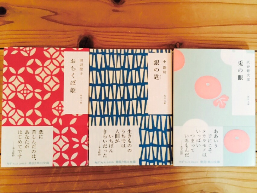 3冊とも角川文庫から出ているのですが、表紙がとても素敵だと思いませんか?これは角川文庫と「かまわぬ」というてぬぐい専門店がコラボしてできたスペシャルカバーです。スペシャルカバーなだけありますね、本当にすっごく素敵です( ´ ▽ ` )ノ