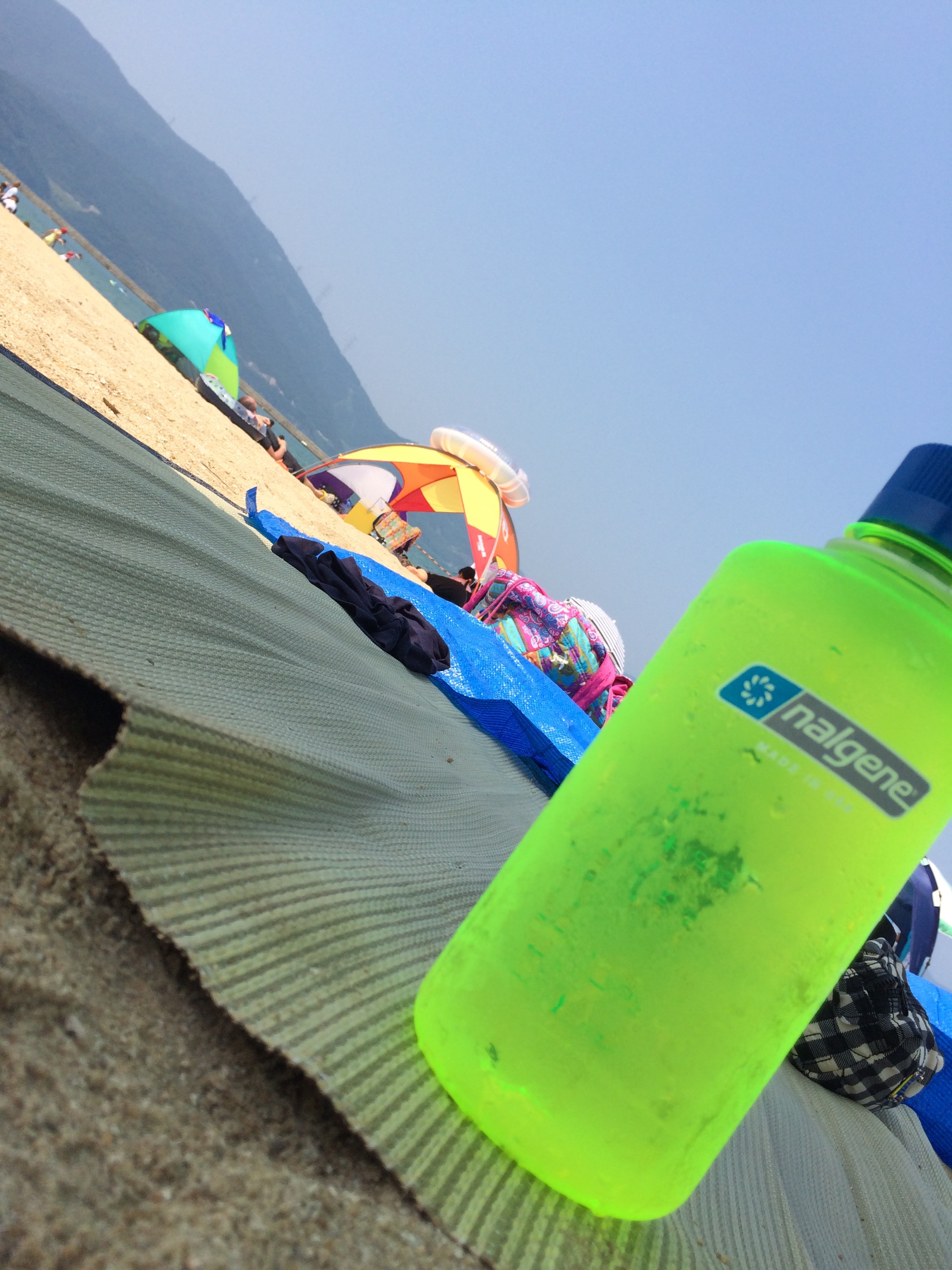 あまりの暑さでパラソルが借りれるとありがたいと思いつつ先ずは車に積んでいたゴザとブールーシートで場所を取りました。パラソルも無事に借りれて快適に過ごせる場所を確保できました!