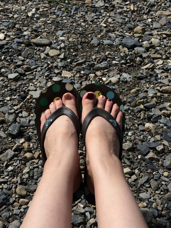 泳ぐことは考えなかったんですが、少しは川の中に入りたいと思いビーチサンダルを持って行き河川敷で履き替えました。