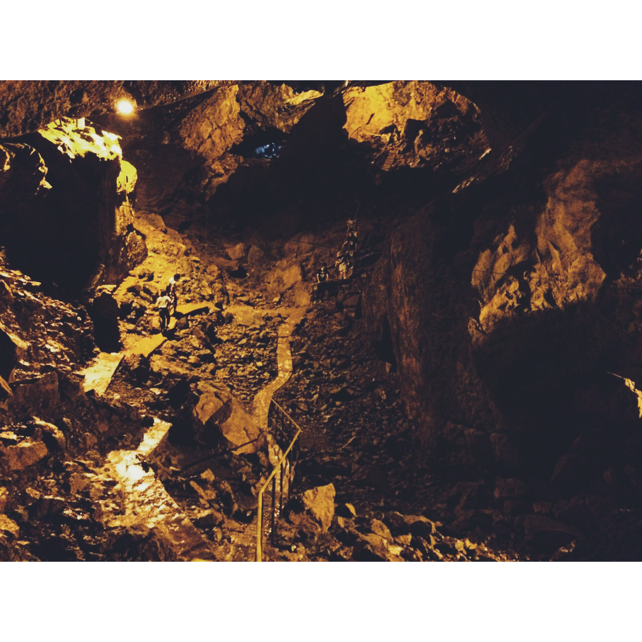 少し歩くと天井が高いスペースに出ました!天井から水滴がポタポタ落ちてきて身体に当たるとかなり冷たくて驚きました。こんなに岩だらけの空間は普段あまり見ない光景だったので、楽しかったです!