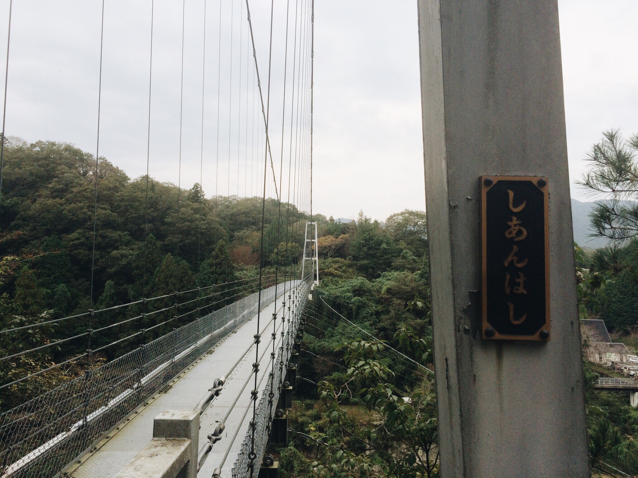 橋長118mの「しあん橋」に到着!歩くと橋が揺れます。橋を揺らして遊んでいると子供たちがやってきて、みんなかなり揺らすので酔いそうでした!笑