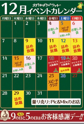 そんなステラおばさんのお店で下カレンダーのように曜日によってイベントが行われています!たまたま立ち寄った際なんと「詰め放題」の日でした♪