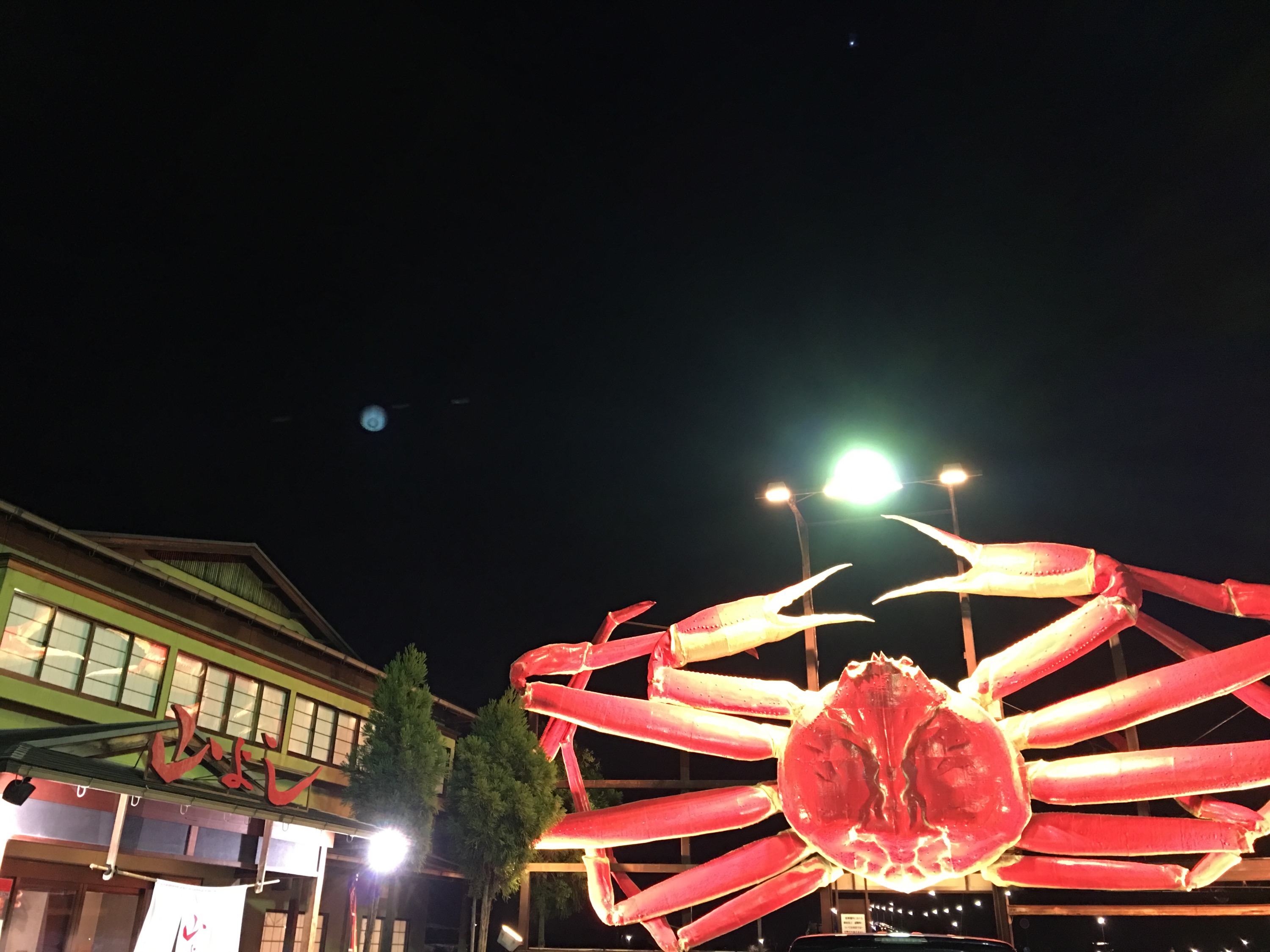 夜にライトに照らされているカニ看板を写真で撮ってみると、とってもひかり輝いていました。