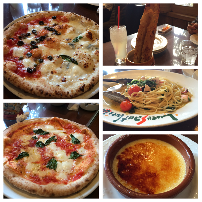 サラダorバケット、パスタorピザ、デザート、ドリンクで人数いたので、みんなでシェアしたので沢山の種類を頂きました。(写真は一部)