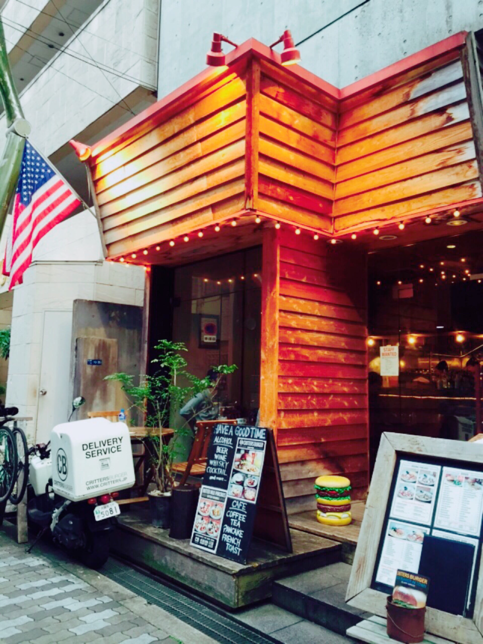 大阪で食べたハンバーガーなのですが、場所もお店の名前もはっきり覚えておりません。ですが店構えがとってもお洒落だったので写真を撮りました。