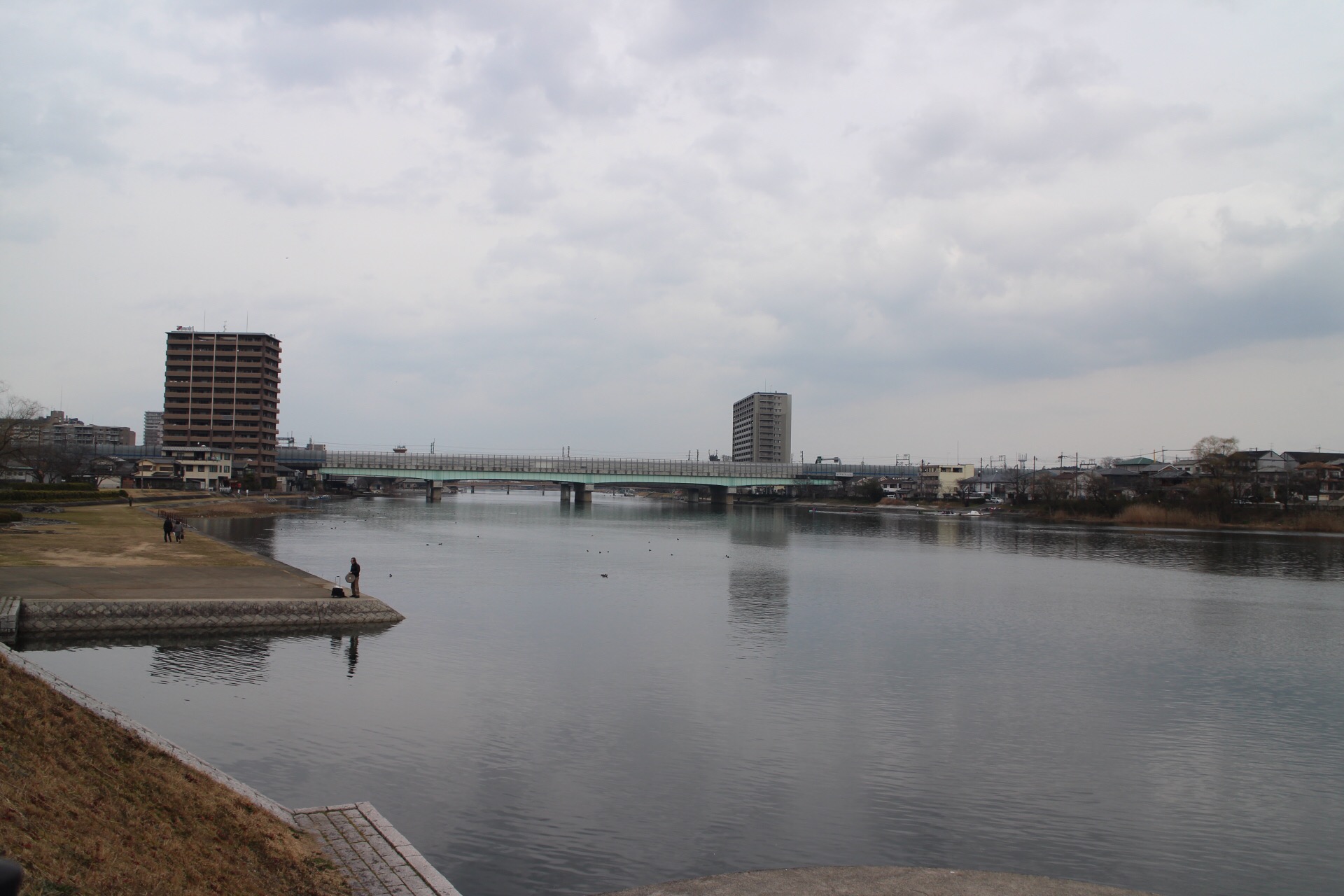 石山駅から自転車を走らせ瀬田川へ行きました。