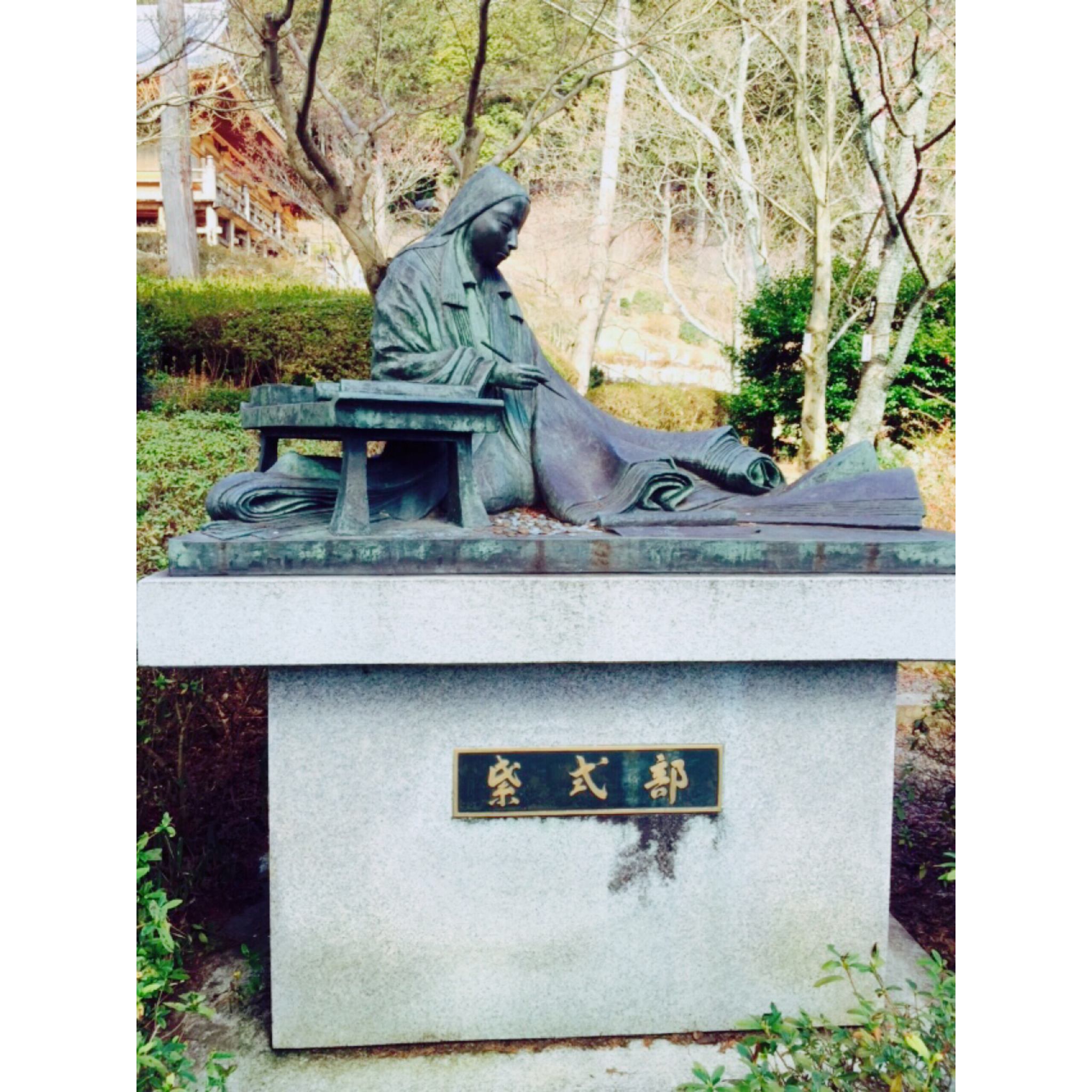 色々探索しているとあの有名な紫式部の銅像がありました!まさか紫式部さんに出会えるとは思っていなかったので、かなり驚きました!(◎_◎;)