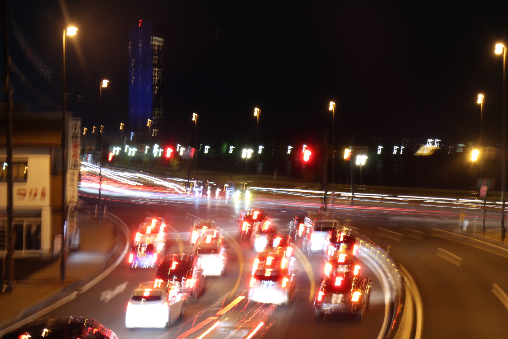 ↑光がビームみたいになればと思いやってみたら、思ったより車が通らなくて残念な感じになりました。。。