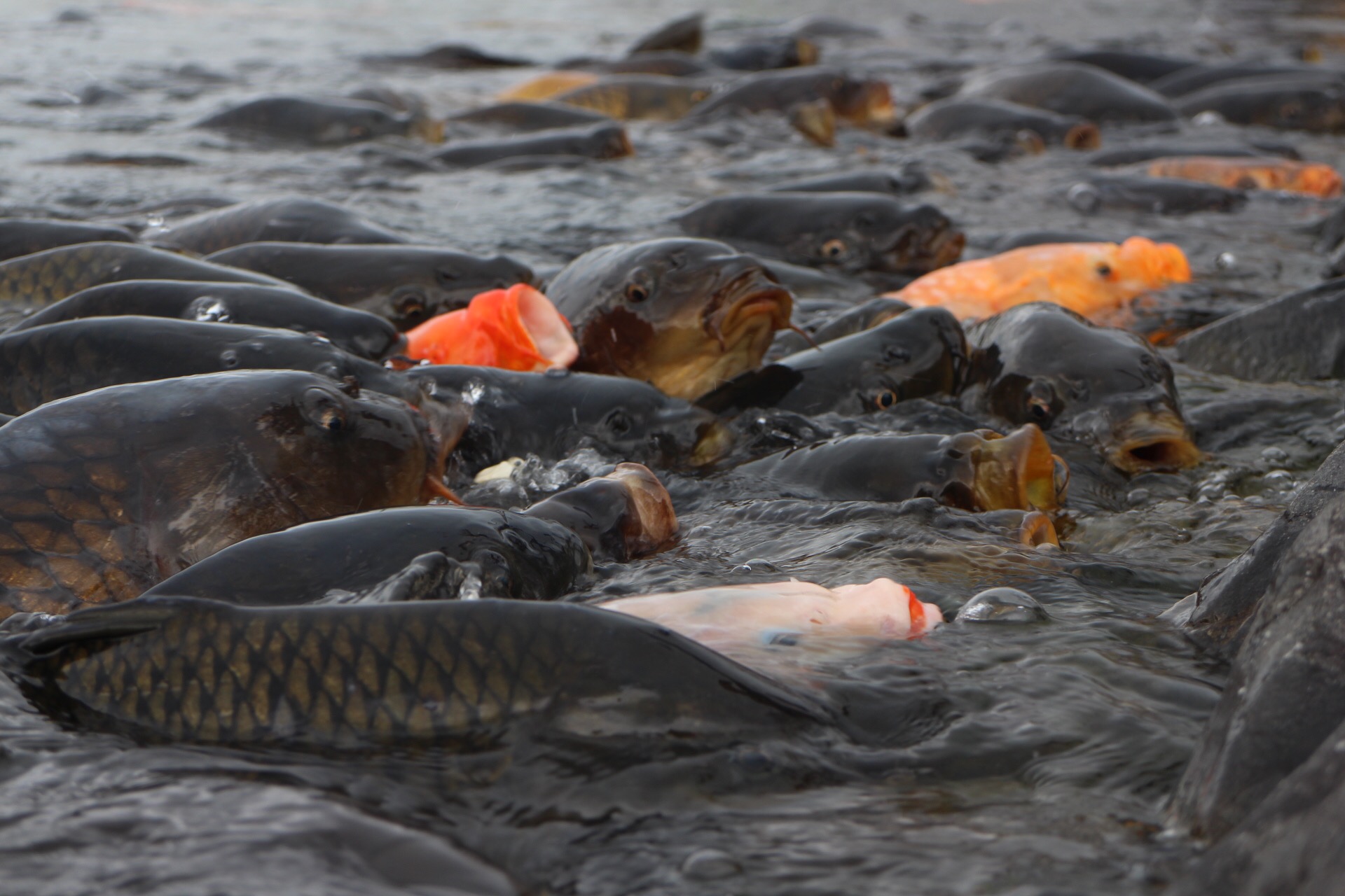 人が来るとエサをもらえることがわかっているようで、エサを持っていなくても群がって来る池もありました。結構かしこいようです。