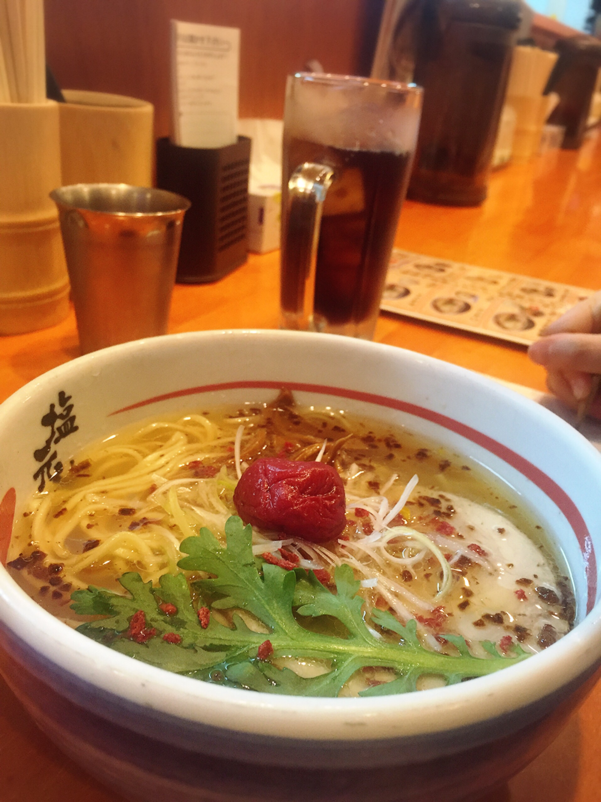私は普通の塩ラーメンを、友人のお姉ちゃんは梅塩ラーメンを注文しました。