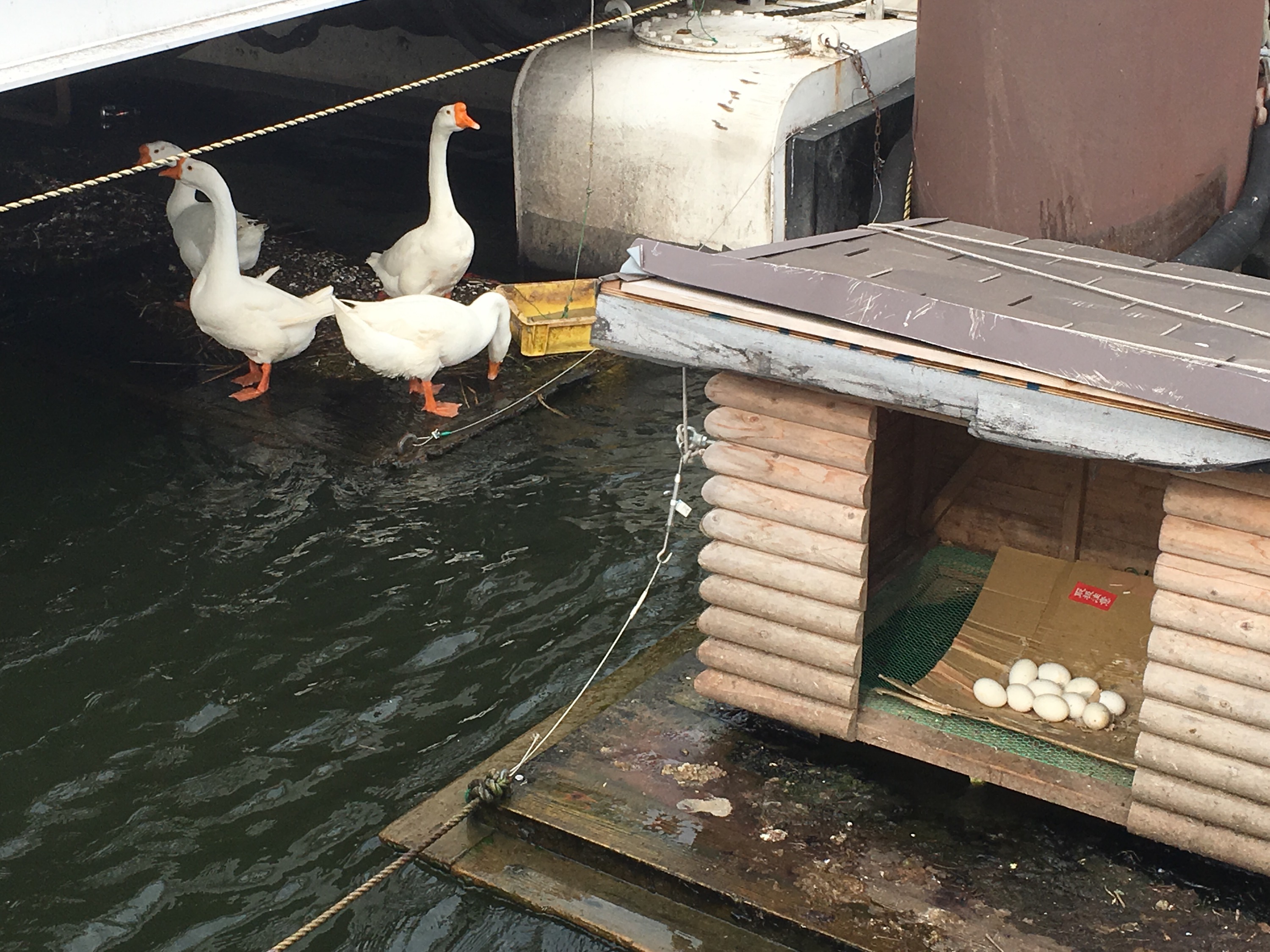 『うみのこ』が停めてあった手前に小さめの小屋とアヒルのような鳥たち。。。↓↓↓
