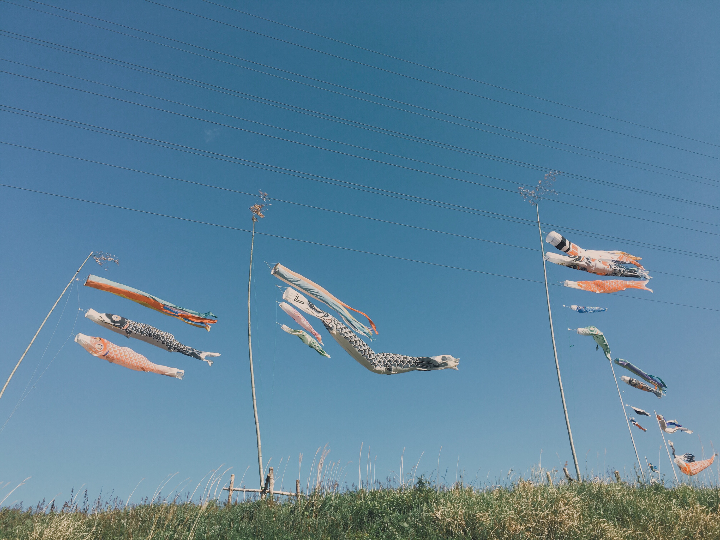 ランチの後はブラブラして過ごしたのですが、たまたま訪れた古着屋さんの奥の高台に素敵な鯉のぼりを見つけました。