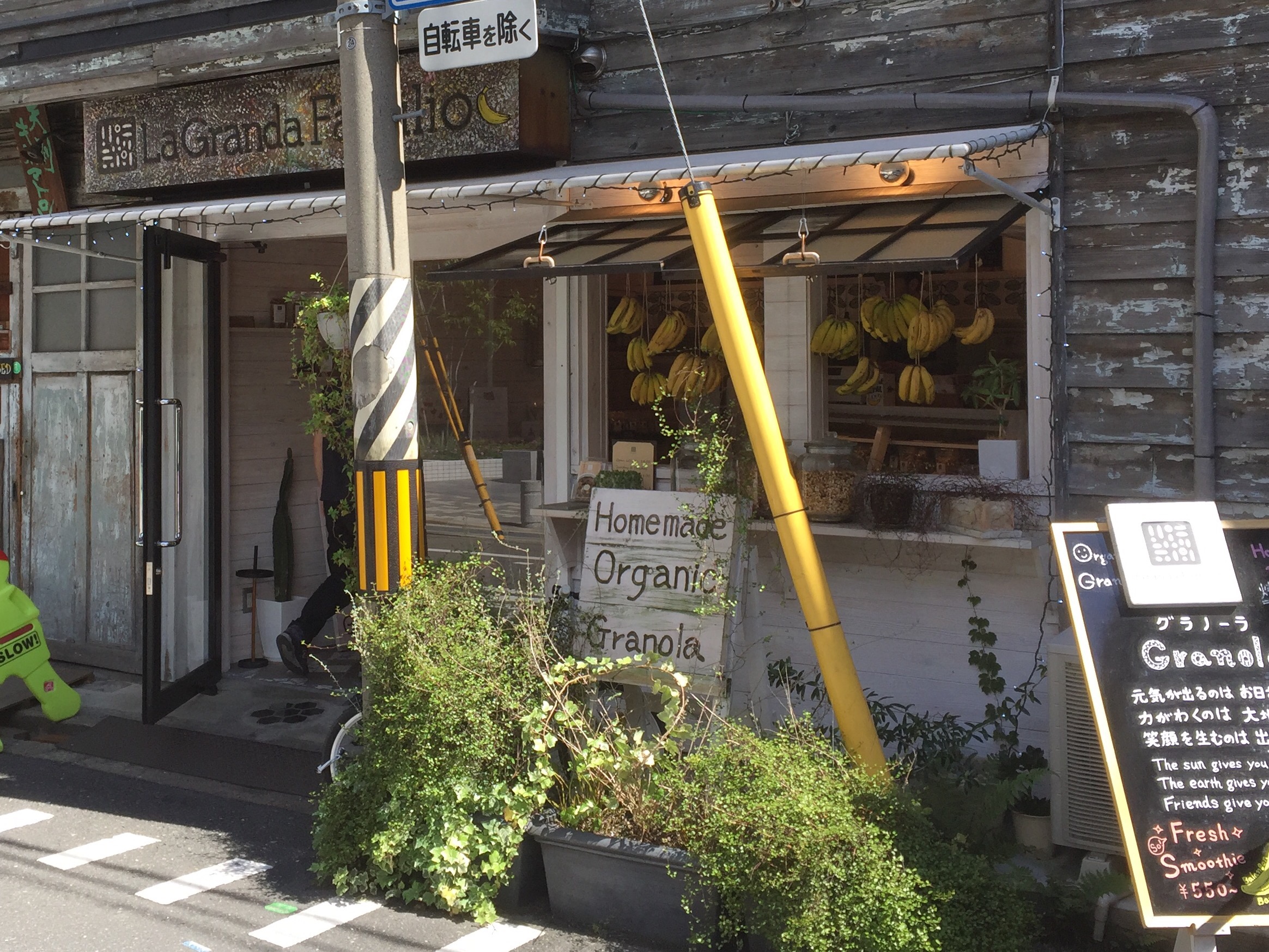 ↓こちらもたまたま見つけたお店なのですが、軒先に吊られたたくさんのバナナが気になりすぎて思わず引き寄せられてしまいました…。