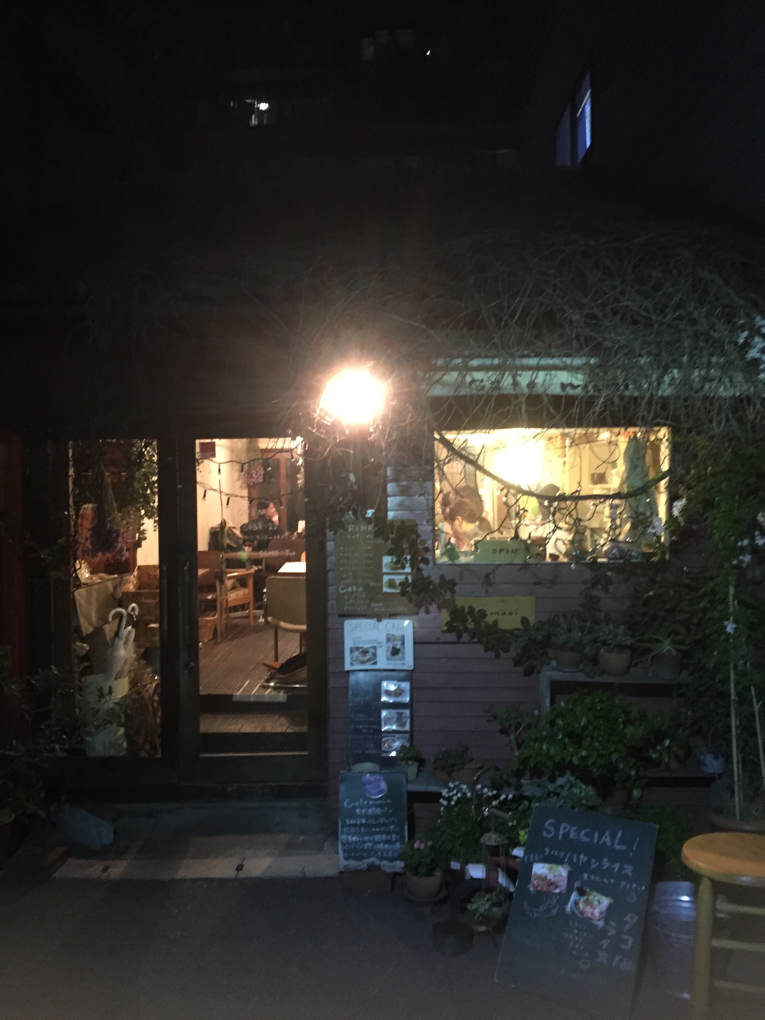 夜はなんだか隠れ家的なカフェへ。路地裏にこそありますがそこまで隠れてません。