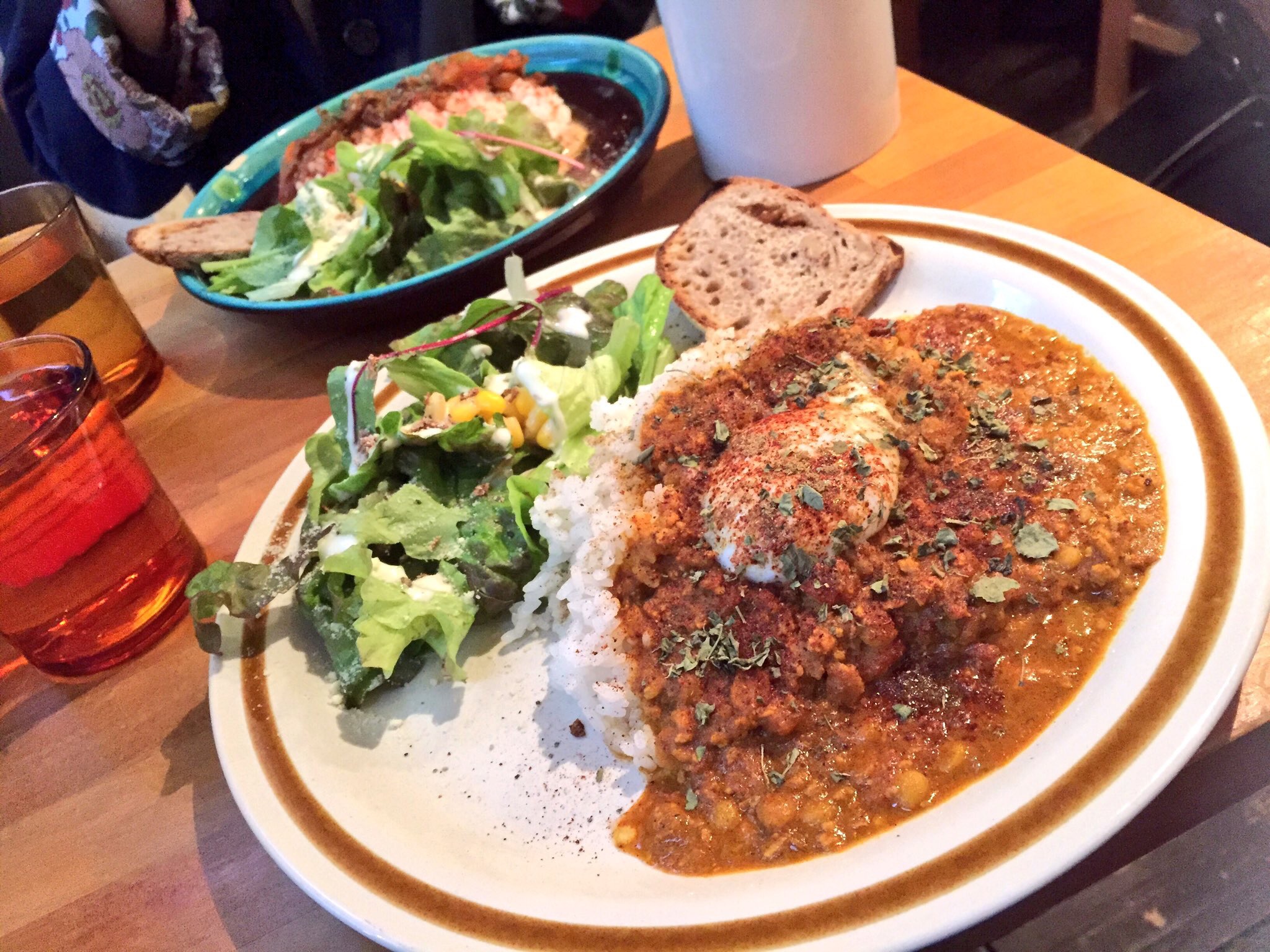 カフェの売り?であるカレーをいただきました!想像以上にスパイシーで水が進む進む!!!