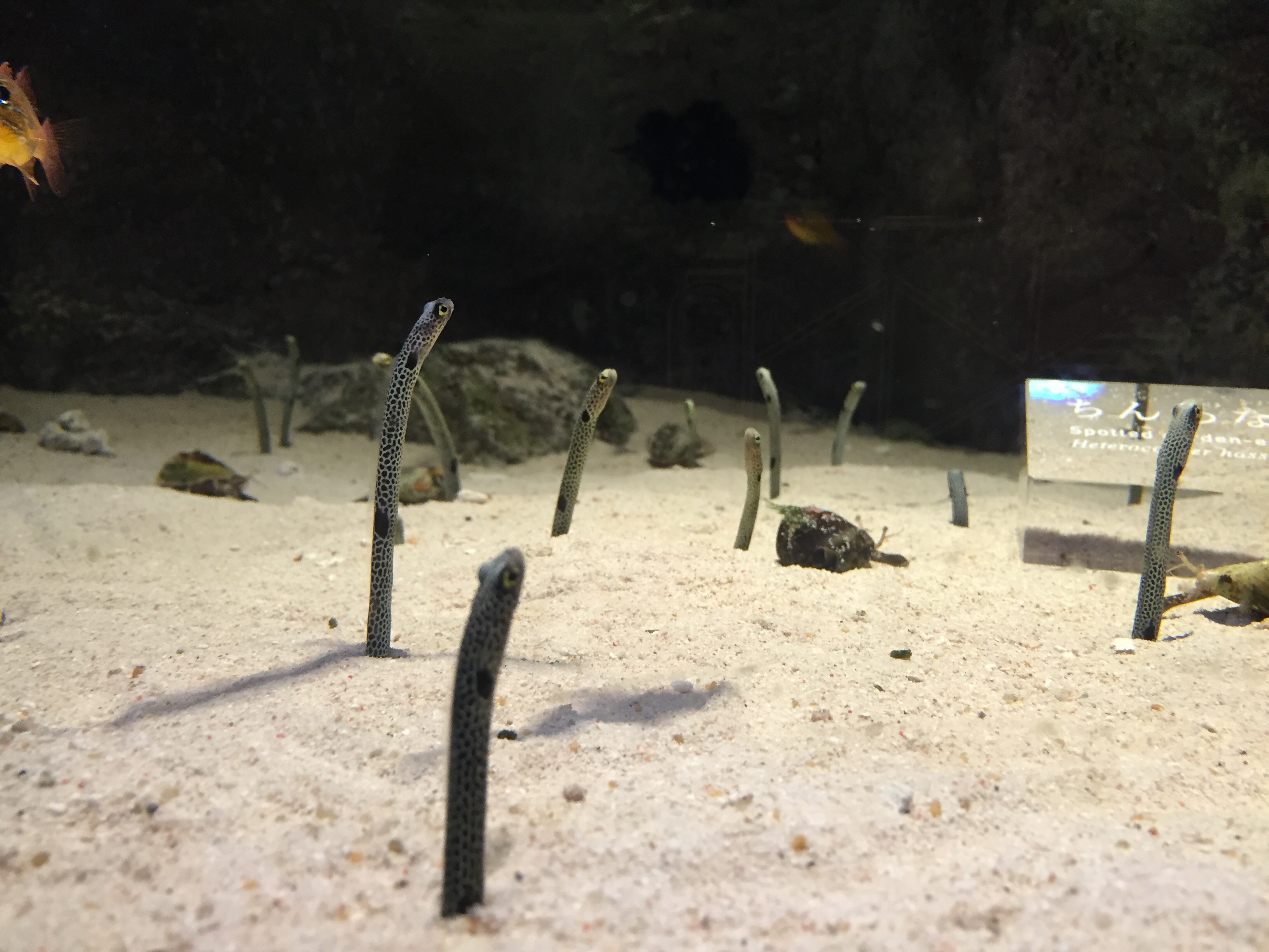 私の大好きなチンアナゴやクラゲもいたので、すごくテンションがあがってしまいイルカショーの時間を忘れるという大失態をしてしまいましたが、何とか立ち見でイルカショーを見ることができました。/