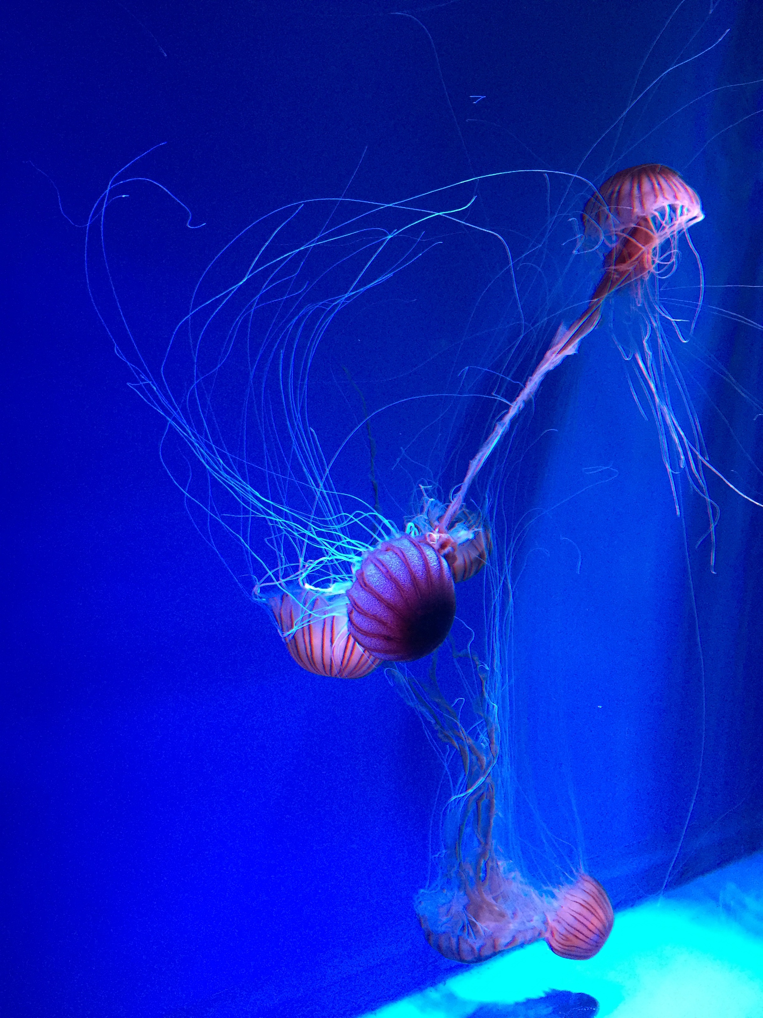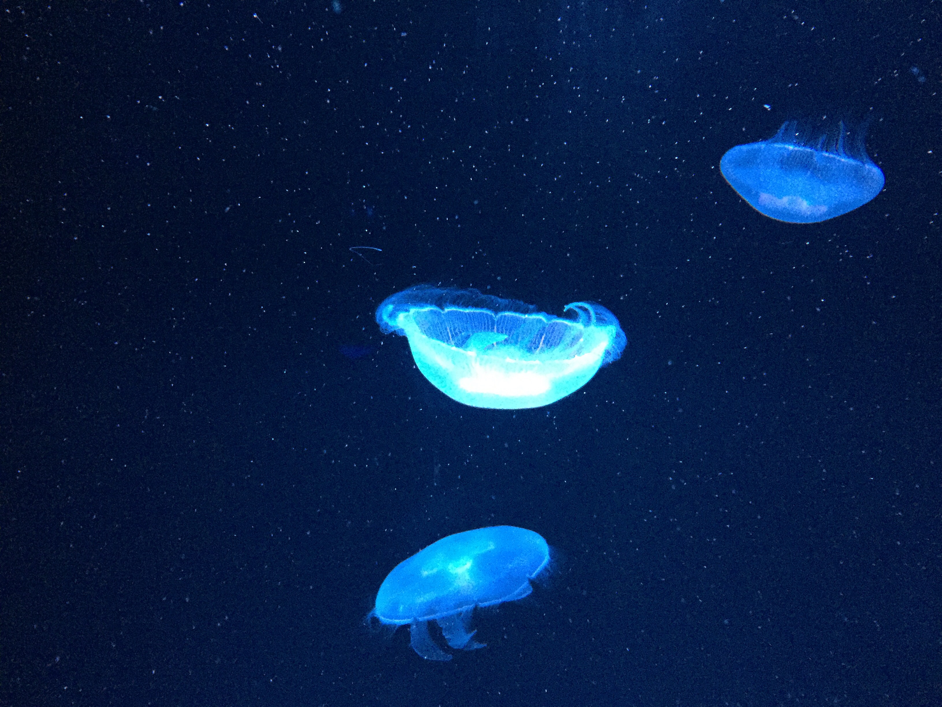 クラゲの足が絡まっている光景を見てしまいました。この子たち、ちゃんと解けたのでしょうか・・・。水槽の前のお客さんたちがみんなザワついていました。
