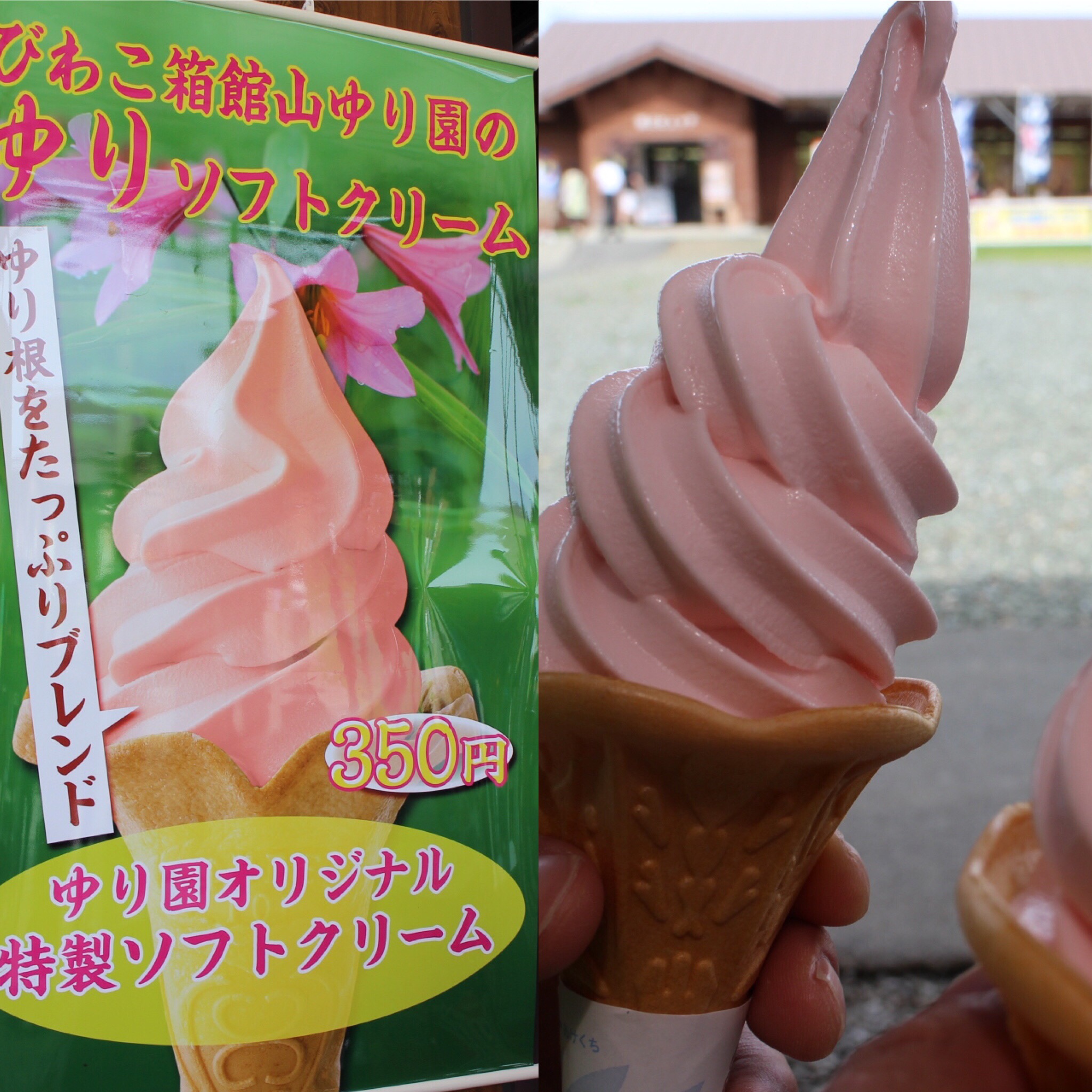 帰り際、ゆりソフトクリームが売っているのを見つけ、ピンク色で可愛かったので食べてみました。
