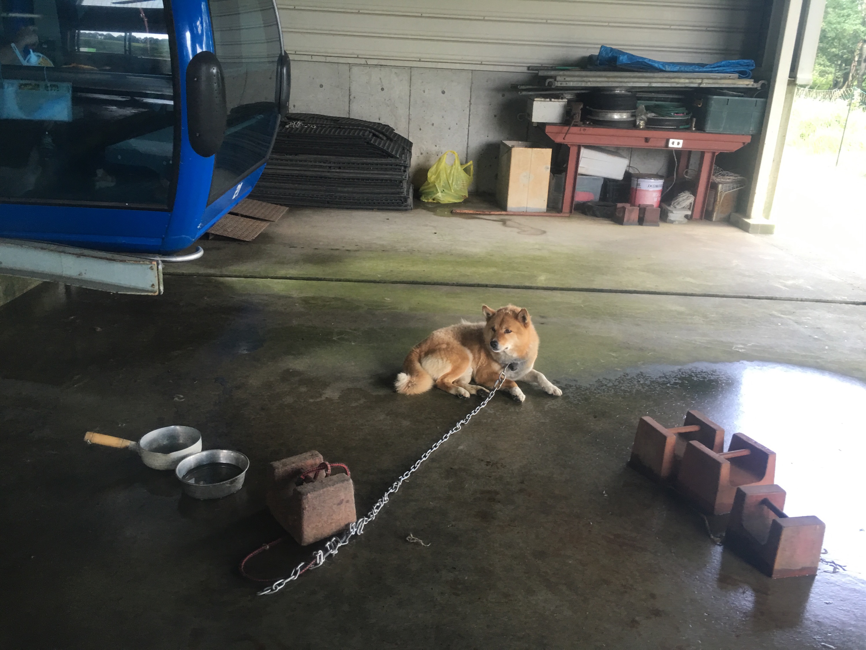 ちょうどゴンドラが折り返すところの内側で、ギリギリゴンドラに当たらない場所にいた1匹の犬。