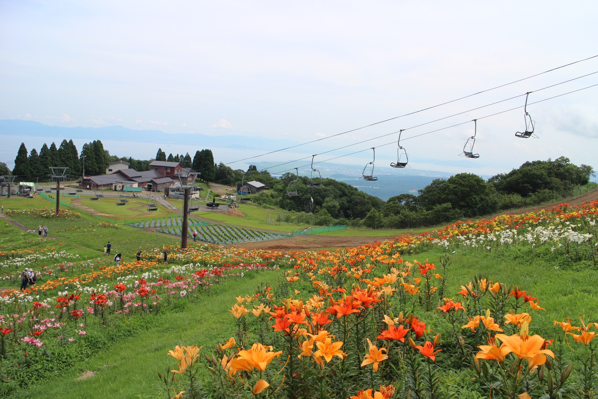 車でドライブしながら箱館山まで行くと、山の上まではゴンドラに乗って向かう感じでした。
