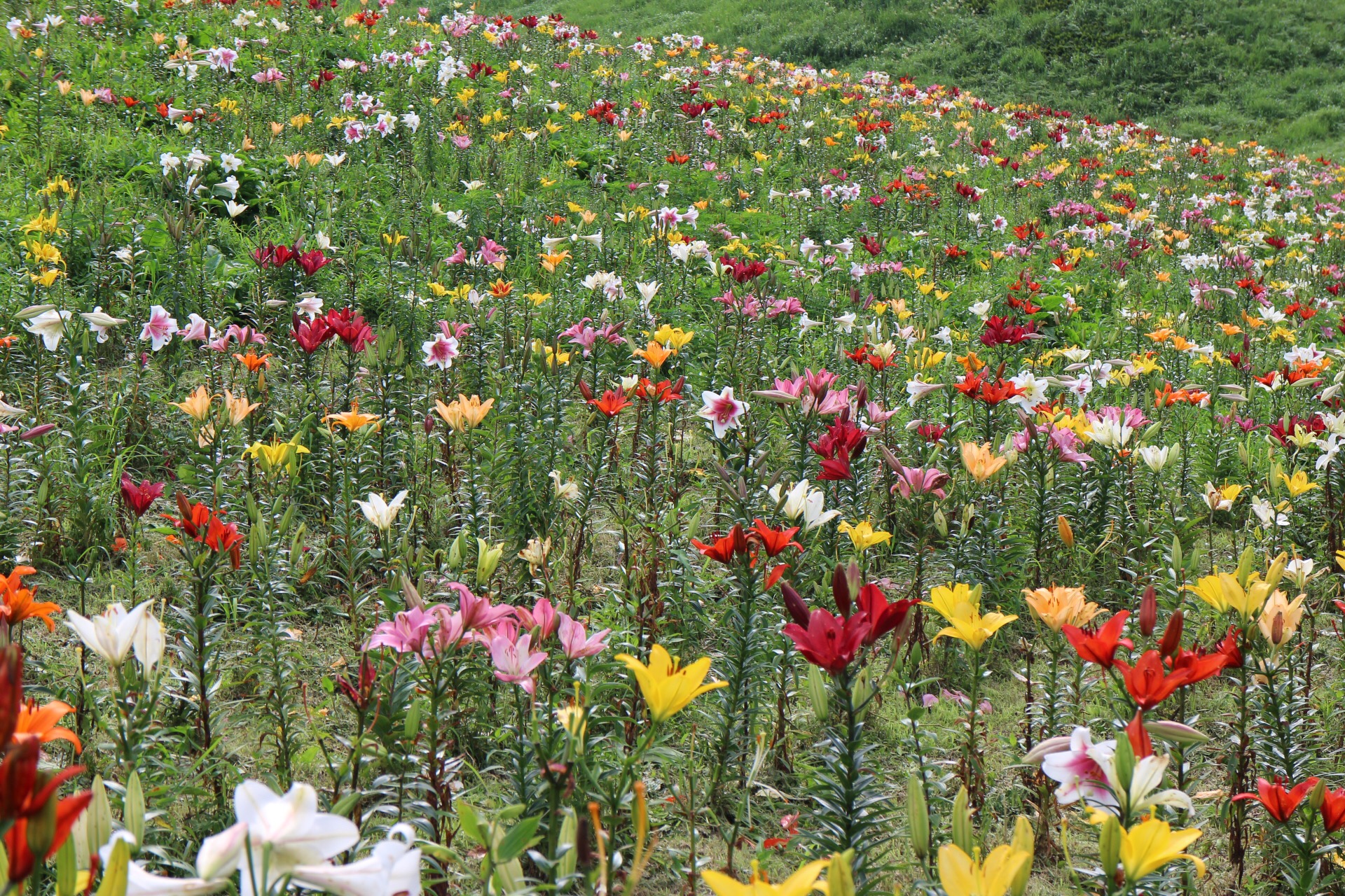 そしてもう片側にも丘がありそちらもゆりが満開でした。いろいろな色味が混ざっており、一面に広がっている景色が素晴らしかったです。
