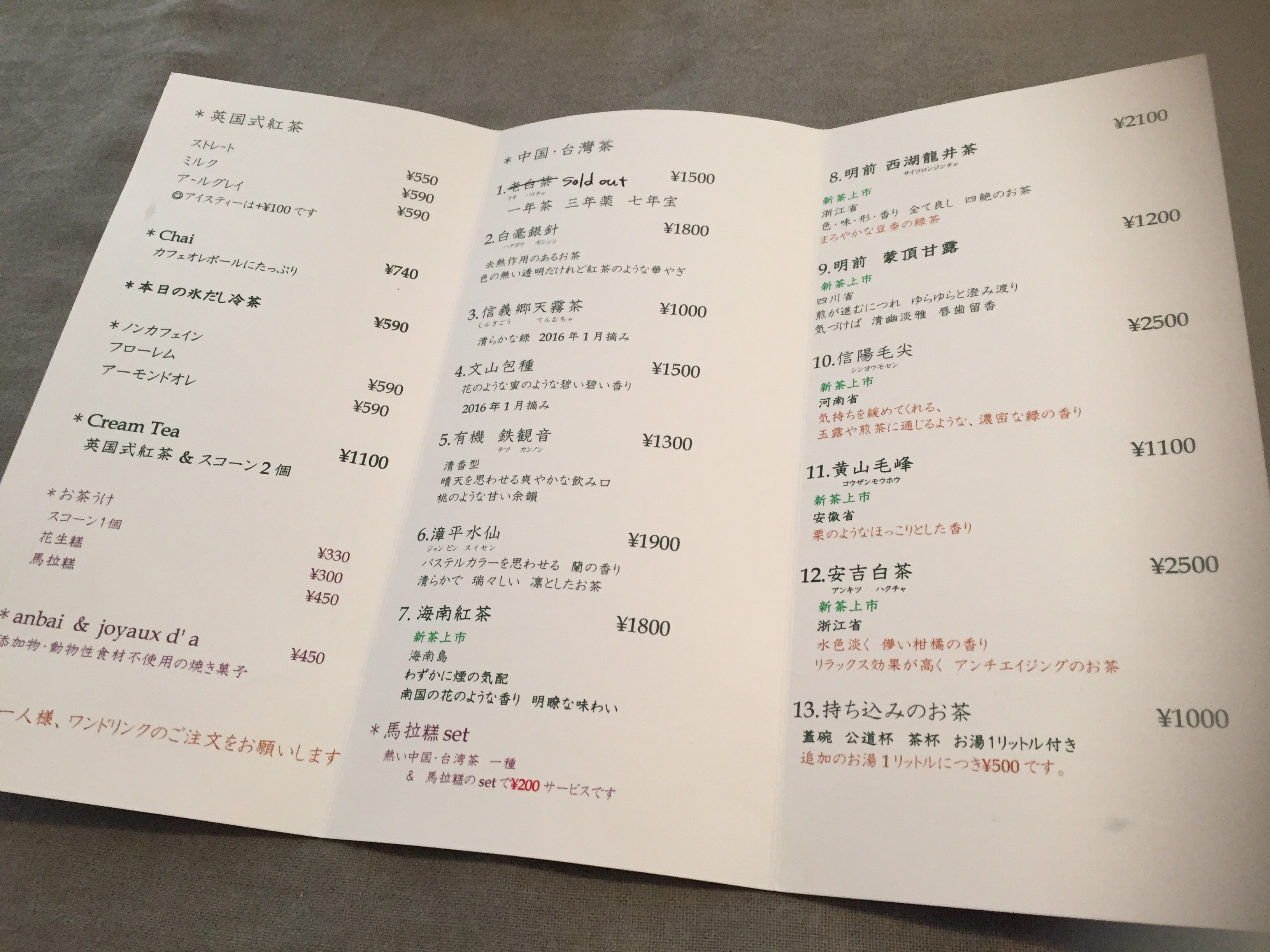 値段だけ見ると高!という感じではありますが、一つの茶葉から10煎以上は余裕で飲むことができるので、お茶だけでお腹いっぱいになるまで味わうことが出来ます。友達数人とシェアすればそこまでお高くもありませんからね(^-^)