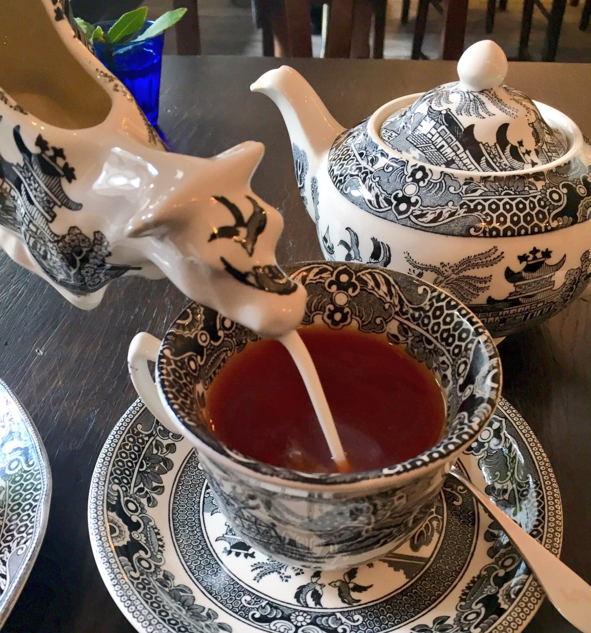面白いのはそれだけではなく…なんと…牛の形をしたミルクポットを傾けると牛さんの口からミルクが…!