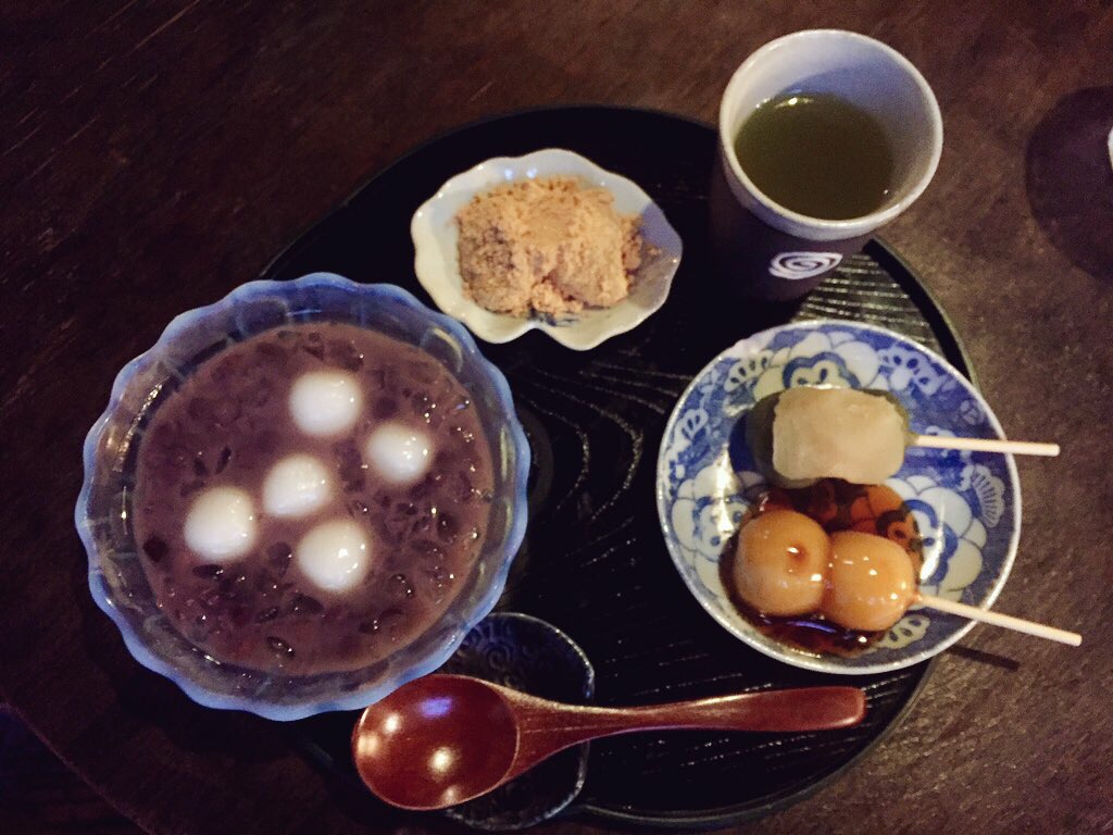 みたらし団子、よもぎ団子、わらびもち、そしてお目当の冷やしぜんざいがセットになったお得なメニューです(^-^)/