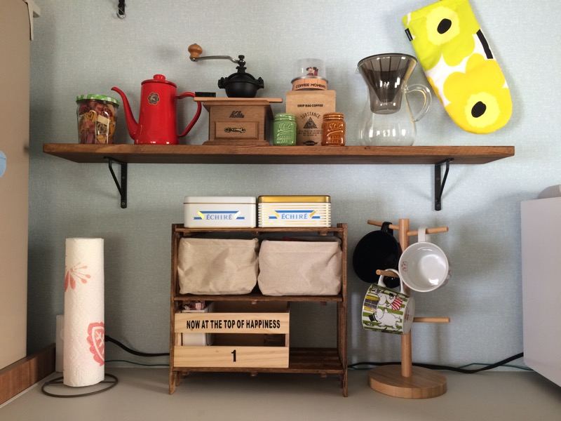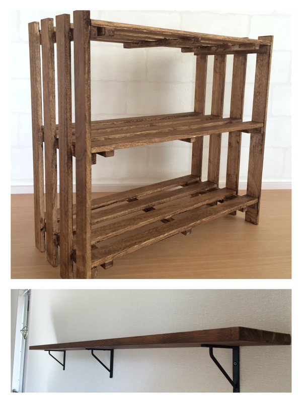 ホームセンターですのこと木材、塗料、棚受けで作りました。