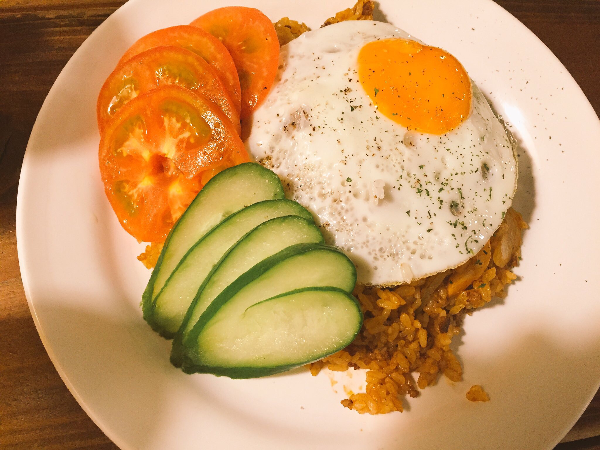 スパイシーなごはんの上に私の大好きな目玉焼きがのっていました( ´ ▽ ` )??