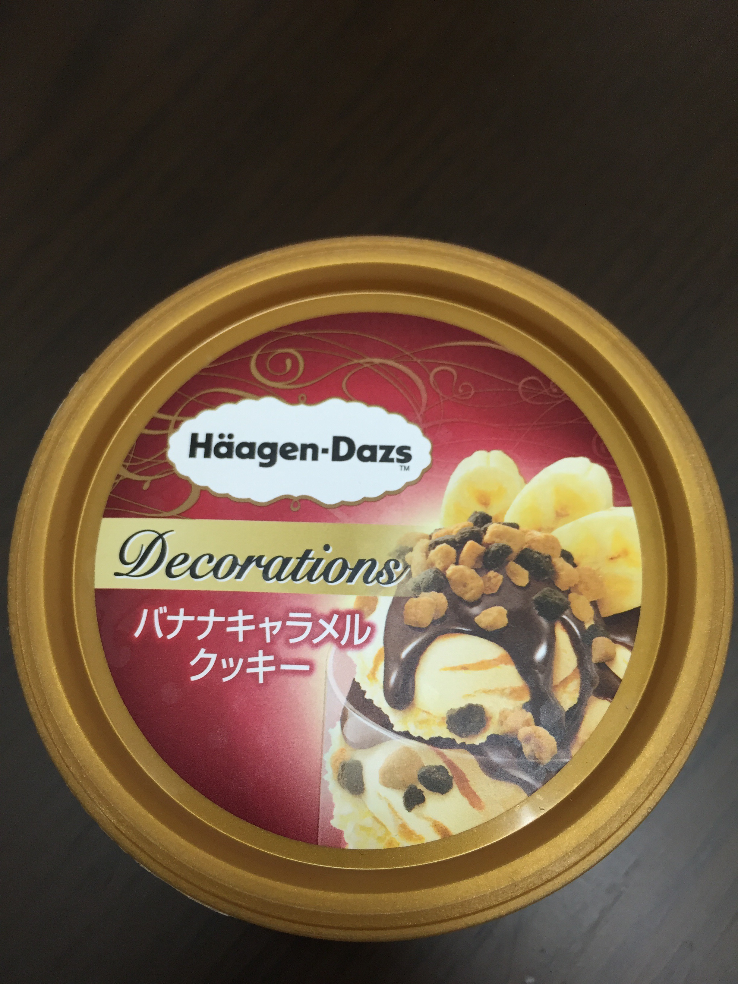 ついこの前に、ハーゲンダッツから出た「バナナキャラメルクッキー」です。私の大好きなバナナの味です。ネットの情報で発売日を知り、イオンへ買いにいきました。