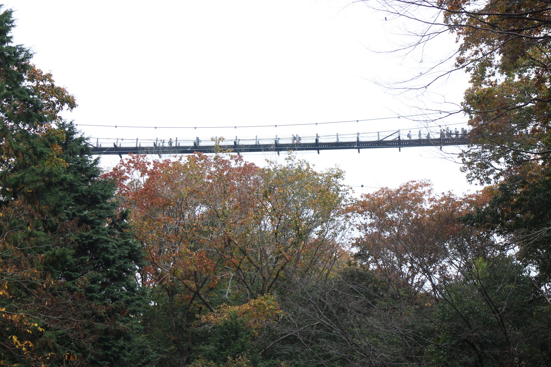 見えにくい写真ですが、吊り橋をたくさんの人たちが渡っていますが、こんなに人が小さいってことは…どれだけ高い場所なんだろうと想像してました。そして私は、吊り橋を渡るの人生で初めてだなぁーっと思っておりました。