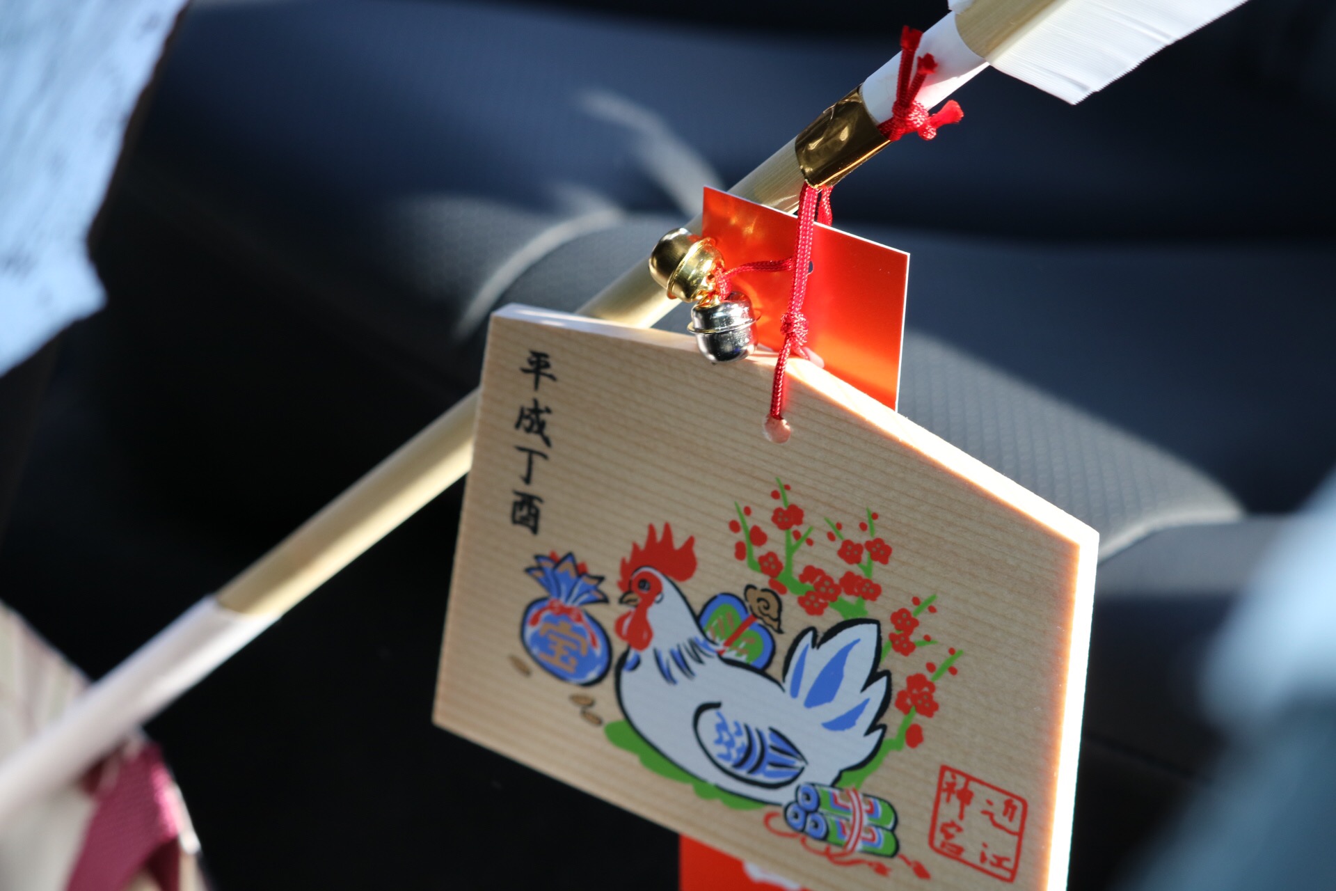無事お参りを済ませた後は、破魔矢を購入しました。今年は酉年なので、鶏の絵が書いてありました。
