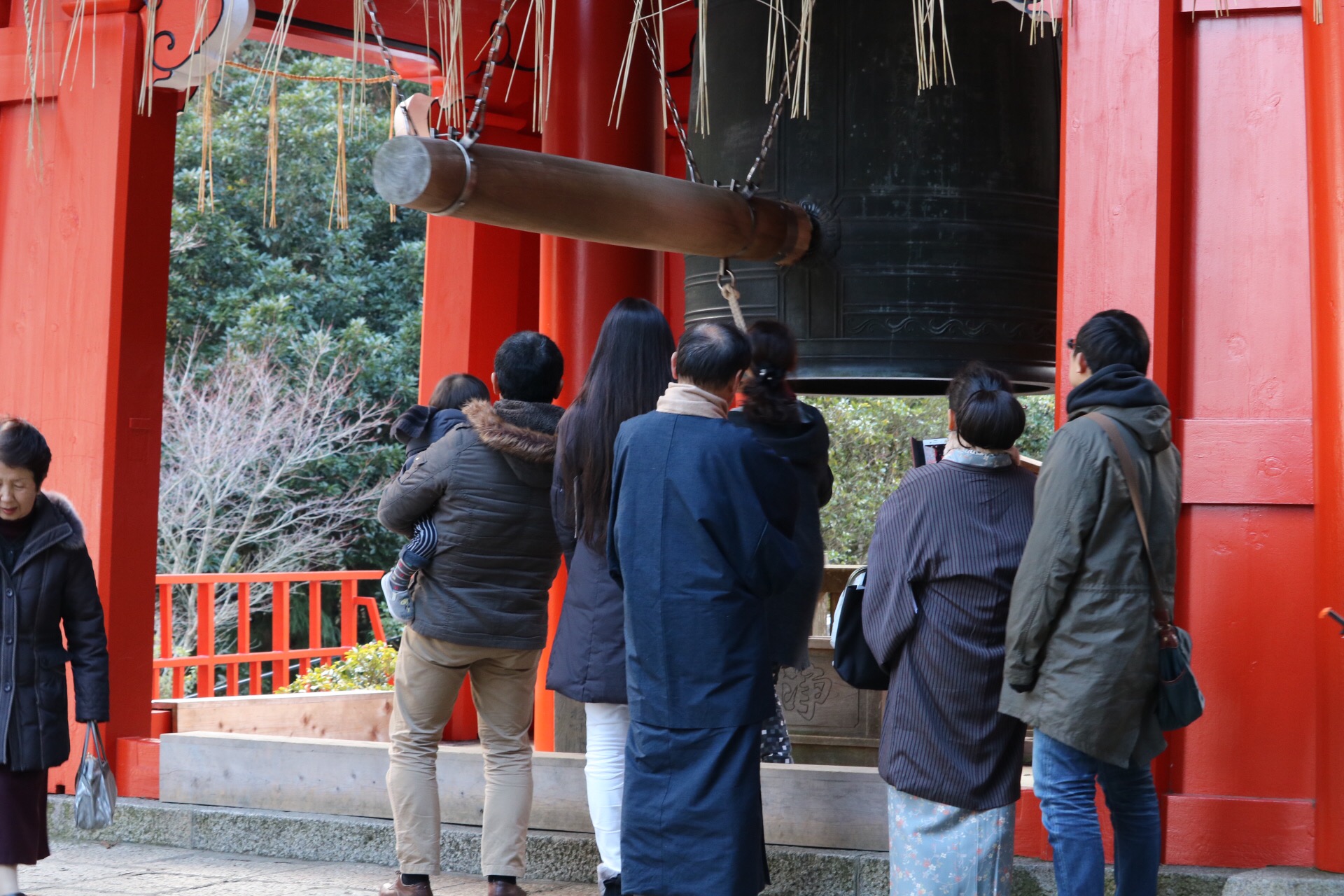 延暦寺の方へ行って見ると、「開運の金」をつく行列。。。