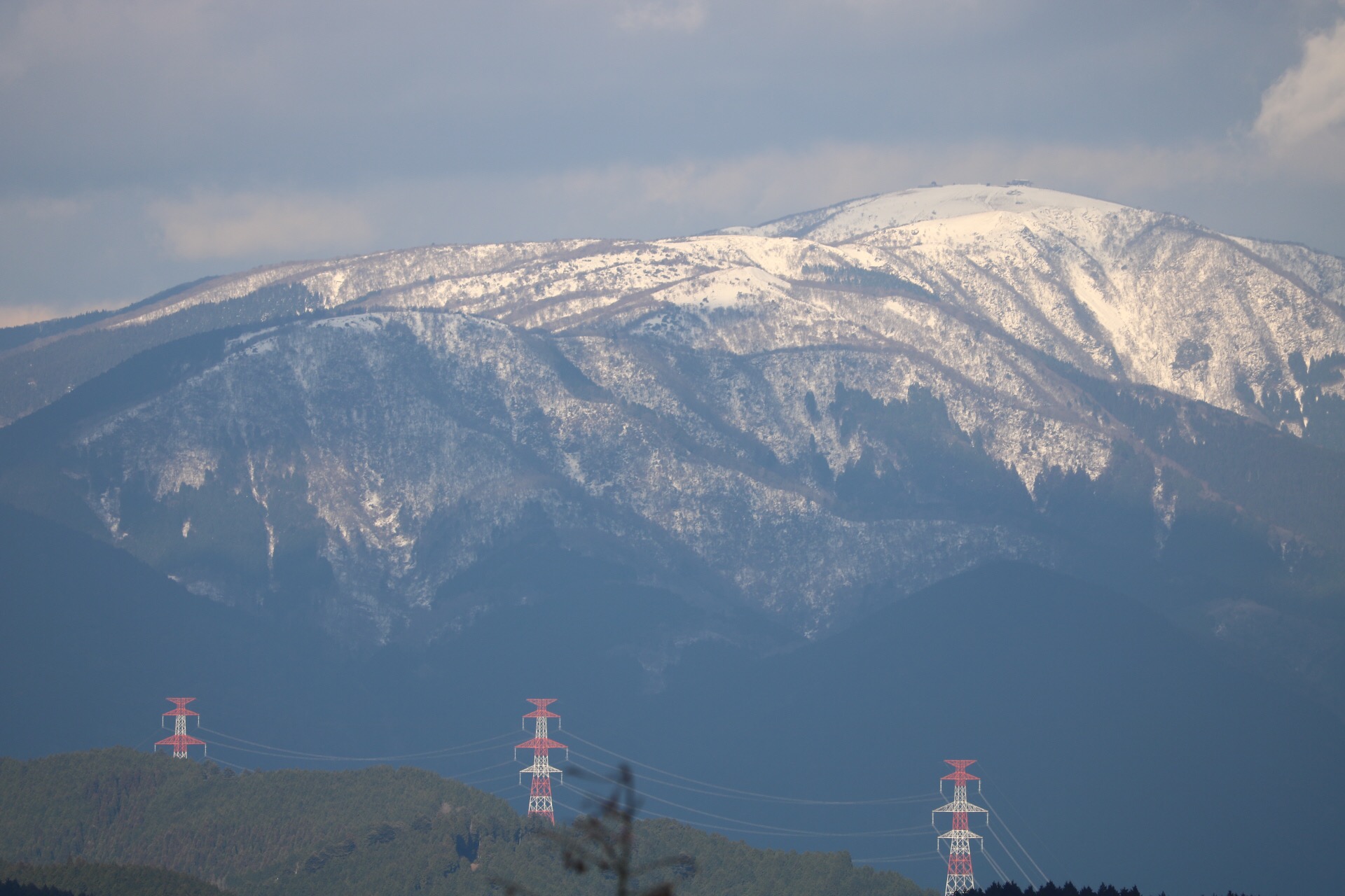山側の景色は雪がうっすらと積もってました。