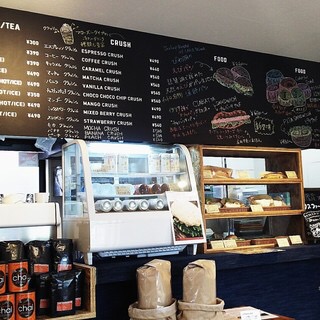 入ってすぐにオーダーカウンターがあり、上には黒板に手書きを交えたメニューが書かれていてとってもオシャレです。
