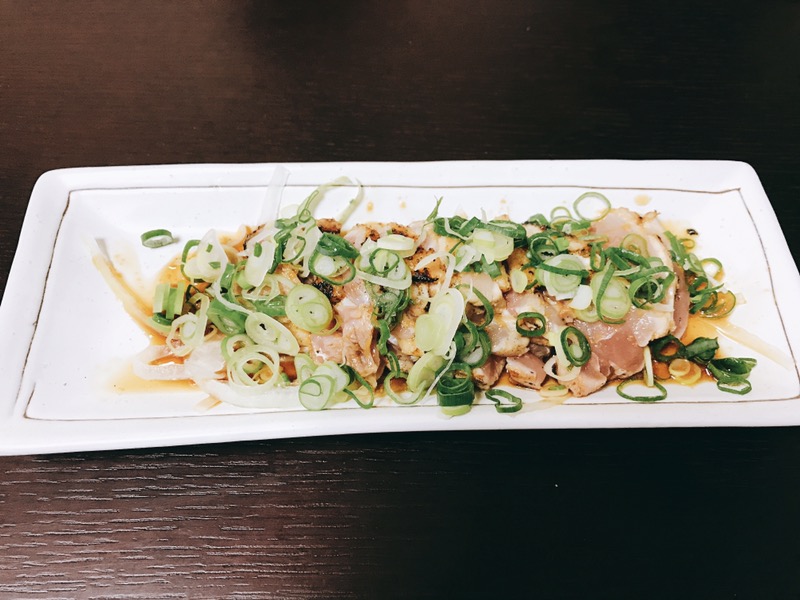 私たちはおすすめの中から、『京赤地鶏のたたき』をオーダー。朝引きの新鮮なもも肉をオーダーが入ってから直火で炙り、直火の香ばしさと、ゆずとポン酢の香りが最高でした。