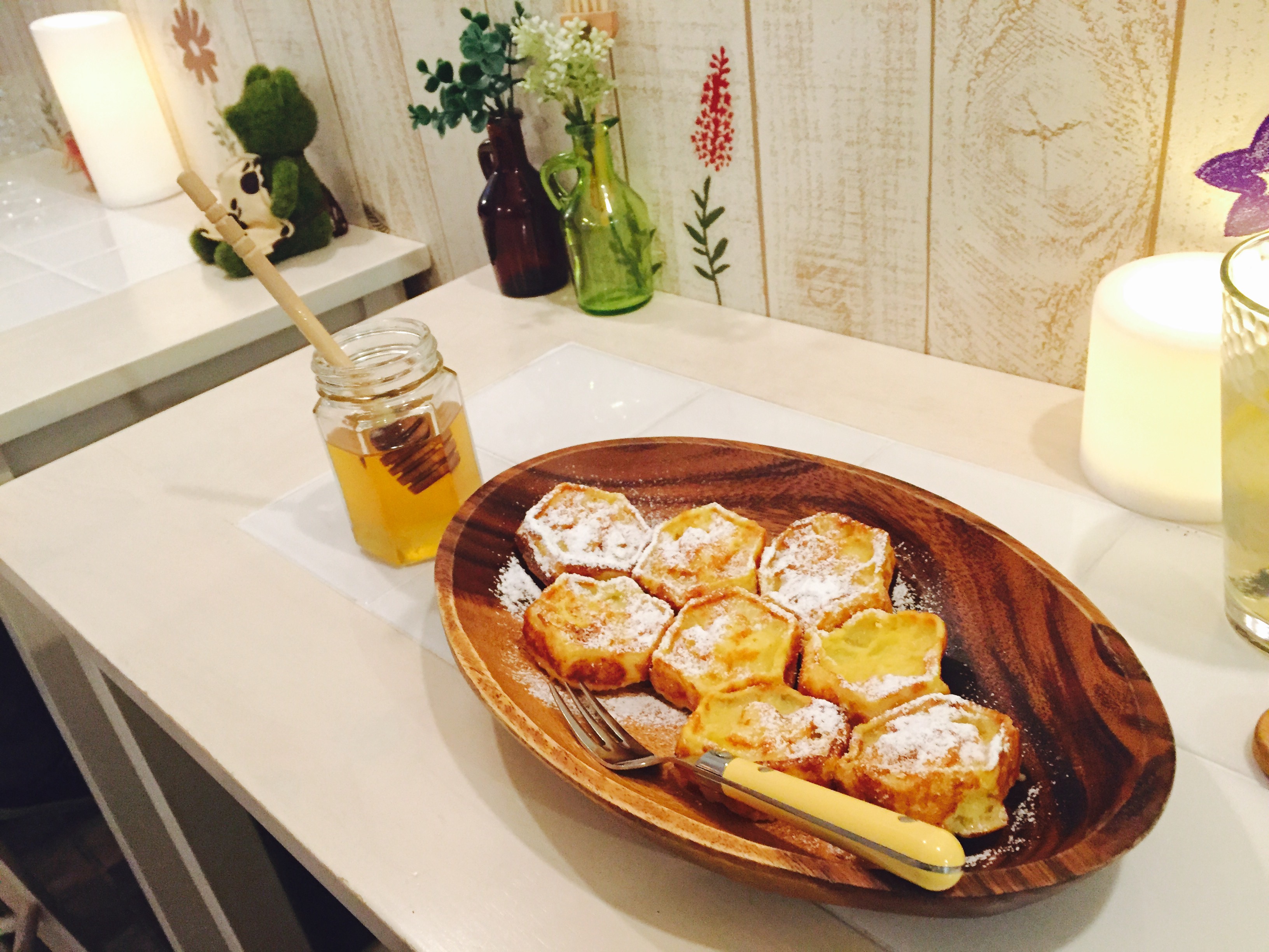 どこまでもコンセプトである蜂にこだわったこのお店は、フレンチトーストまでも蜂の巣型に…!!🐝