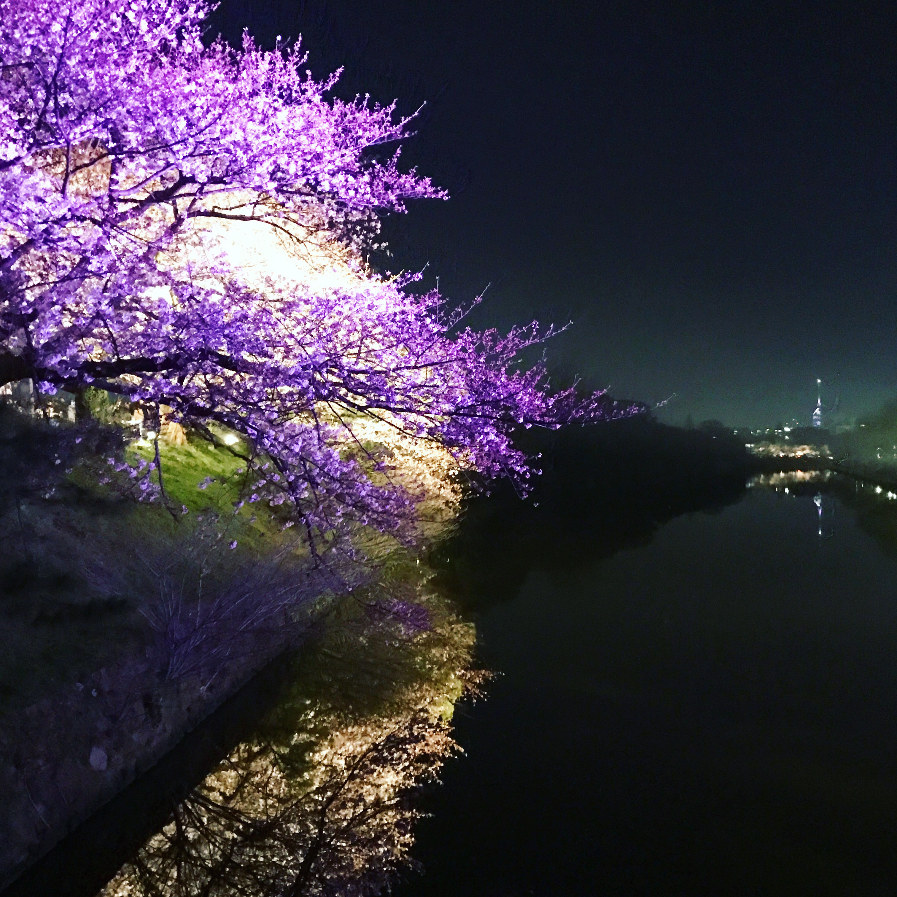 川に映った夜桜です??