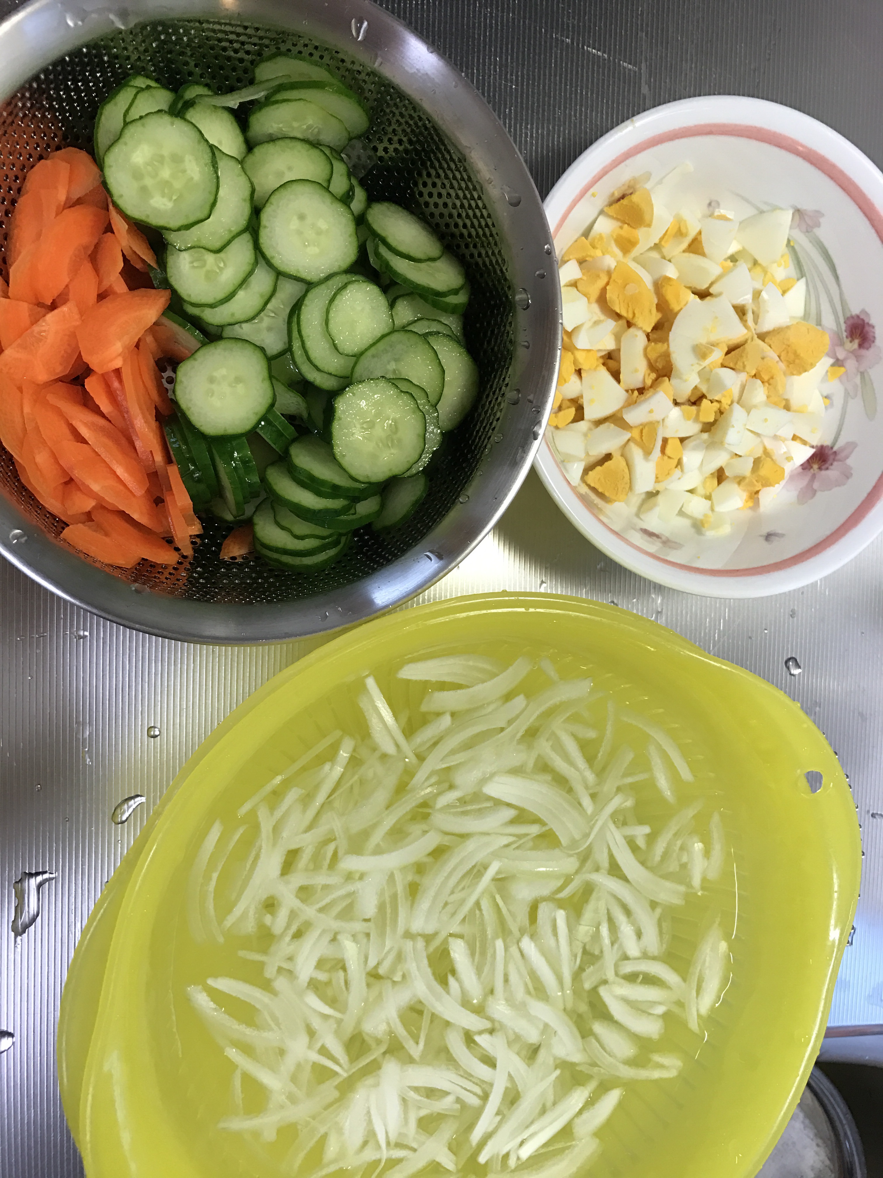 にんじん、玉ねぎ、きゅうり、ゆでたまご。
