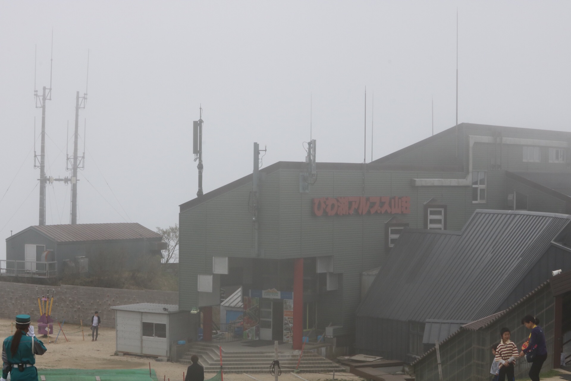 車を止め、ロープウェイに乗り換えて山頂に到着すると、かなり天候が悪かったです。。。